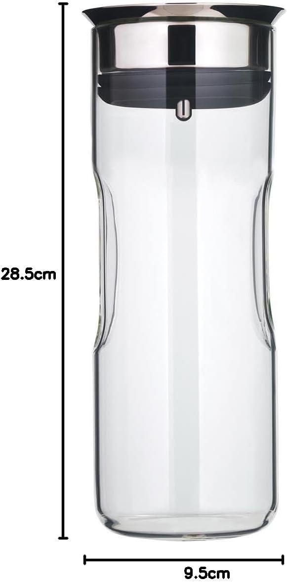 Inhalt: 1x Karaffe (Füllmenge 0,8l/ 24 oz, Höhe 24 cm, Ø 9,8 cm) - Artikelnummer: 0651046040 Material: Hochwertige Glaskaraffe mit Silikonrand und CloseUp-Verschluss aus Cromargan Edelstahl Rostfrei 18/10 - spülmaschinengeeignet und hitzebeständig bis 130°C Der pfiffige CloseUp-Verschluss öffnet und schließt sich beim Eingießen mithilfe eines Kippmechanismus automatisch. Eis und Fruchtstücke werden durch ein integriertes Sieb zurückgehalten Die Karaffe passt in das Getränkefach eines handelsüblichen Kühlschranks. Durch die Hitzebeständigkeit eignet sich die Karaffe für Kaltgetränke und Heißgetränke Komfortable Handhabung dank ergonomischer Griffmulden. Große Öffnung zum einfachen Befüllen. Spritz- und tropffreies Ausgießen | قیمت یورویی : 29.99€