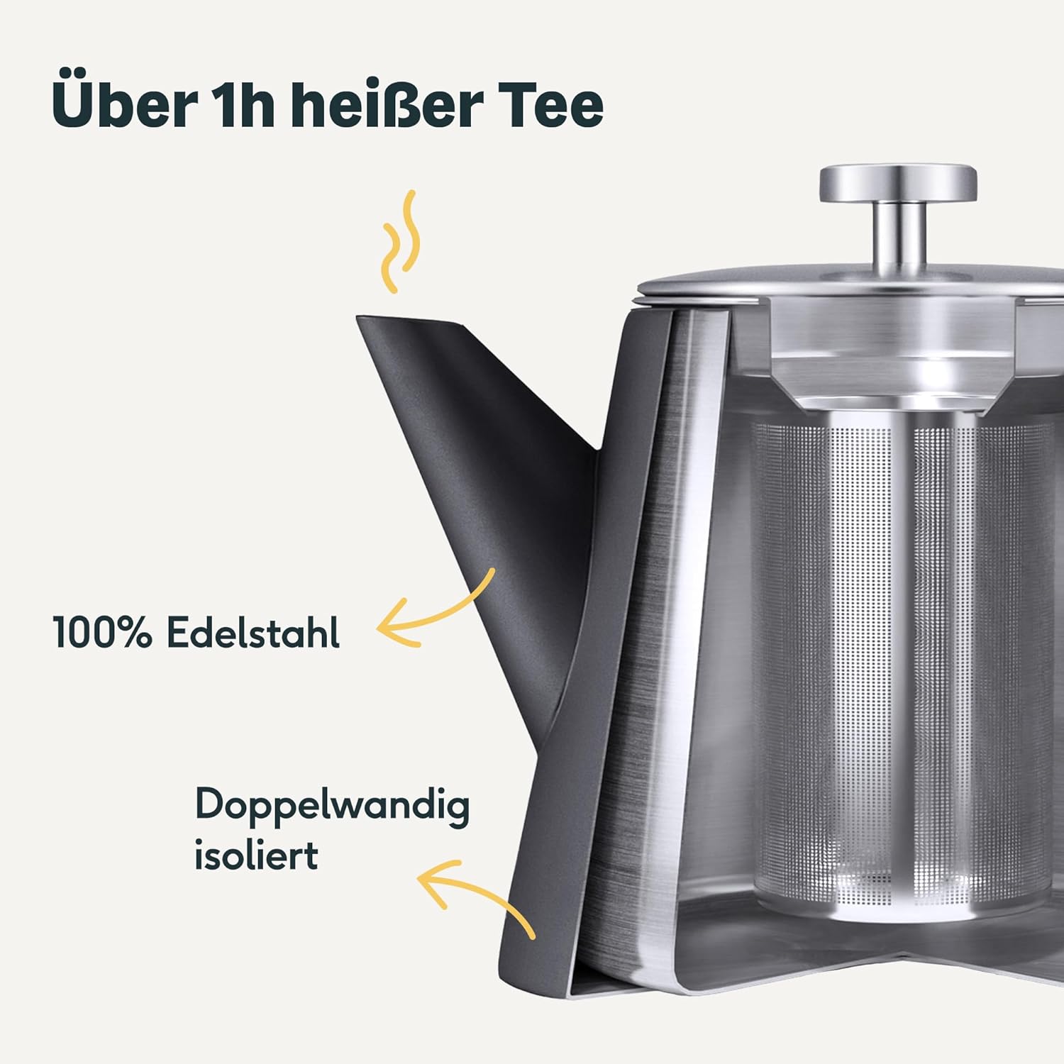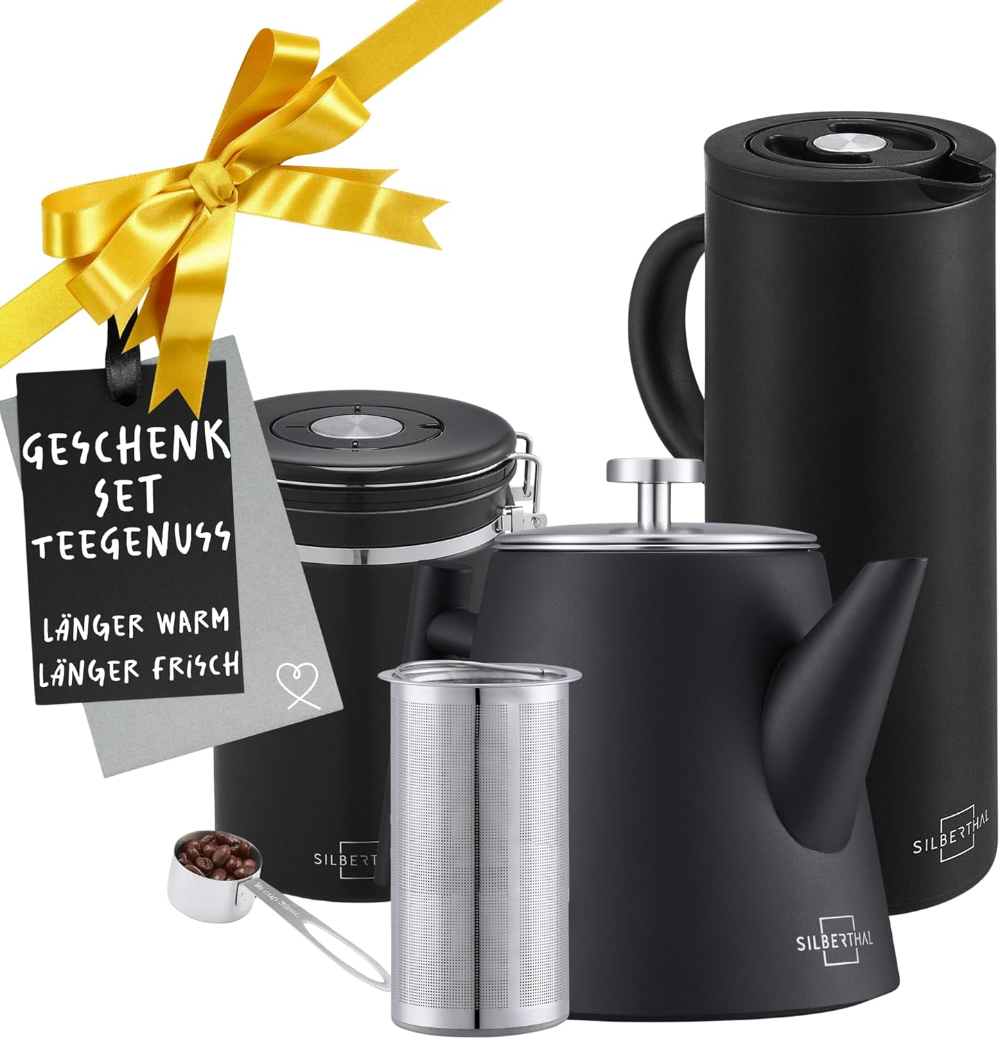 SILBERTHAL Thermo Teekannen 3er Set mit Isolierkanne 1 Liter und Teedose - aus Edelstahl & doppelwandig - Ideales Geschenkset für Winterzeit 3er Set Tee Geschenkset | قیمت یورویی 74.95€