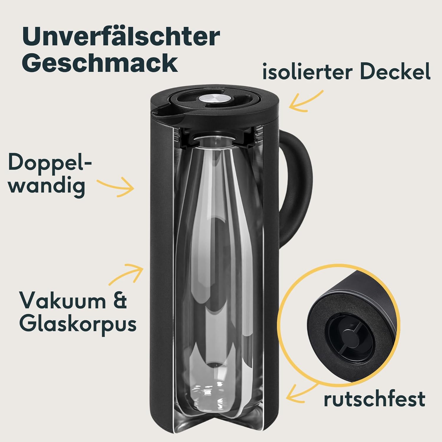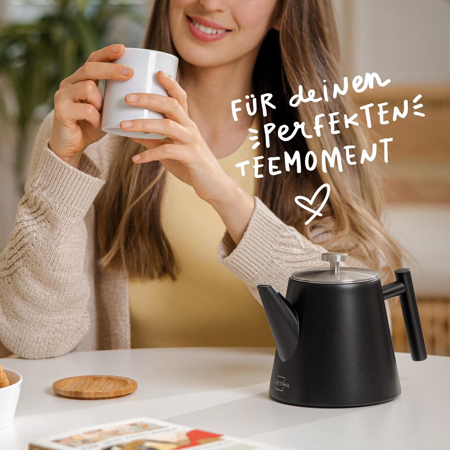 ✔ Doppelte Freude – Teekanne und Isolierkanne mit je 1 L Volumen für Tee- oder Kaffeegenuss zu Hause, im Büro oder unterwegs. ✔ Warmhalte-Wunder – Die Teekanne hält bis zu 1 h warm, die Isolierkanne sogar bis zu 12 h. Tropffreies Ausgießen durch spezielle Tülle und Druckverschluss. ✔ Komfortabel & sicher – Einhändige Bedienung, rutschfester Stand und kühle Griffe machen das Genießen besonders angenehm. ✔ Hochwertige Materialien – Edelstahl mit kratzfester Beschichtung, BPA-freie Kunststoffe und stoßfeste Bauweise für lange Haltbarkeit. ✔ Stilvolles Duo – Modernes Design in Schwarz, praktisch, robust und das perfekte Geschenk für Teeliebhaber und Kaffeegenießer. | قیمت یورویی : 74.95€