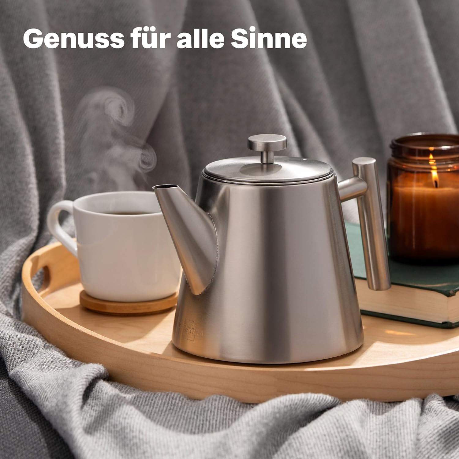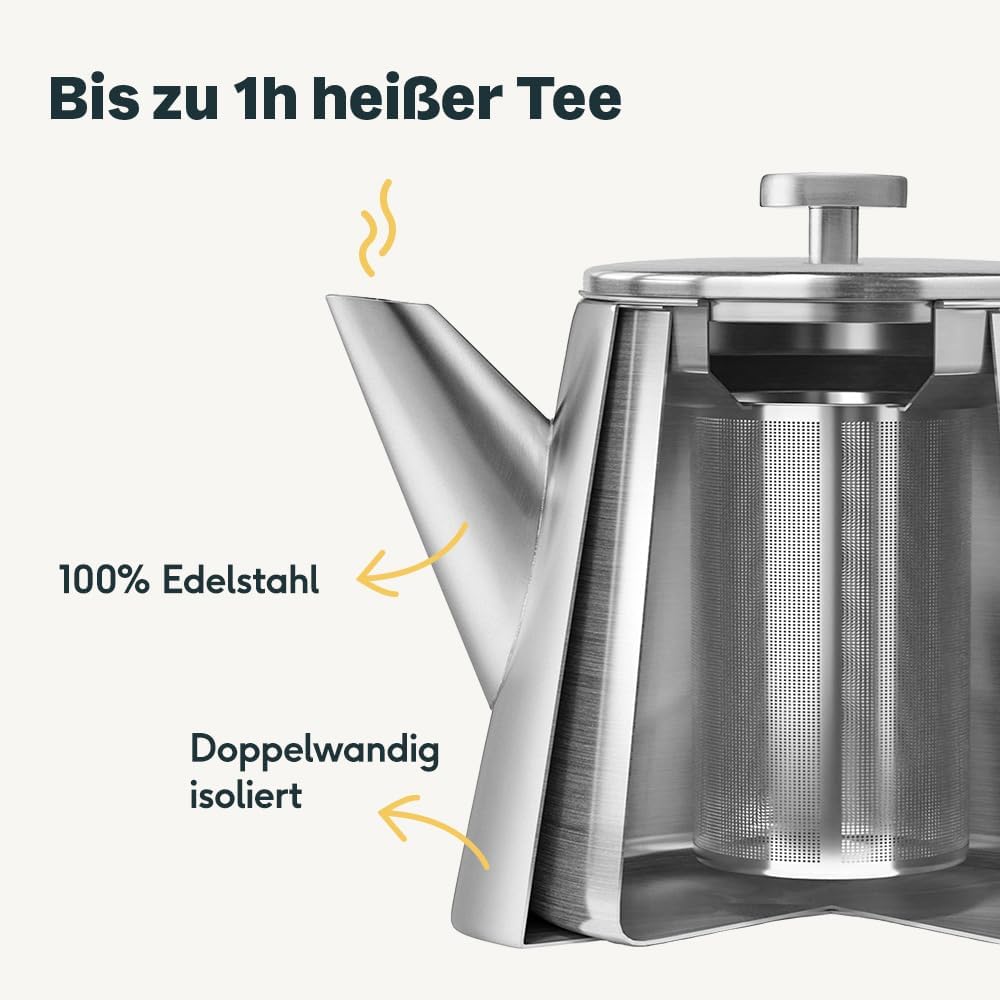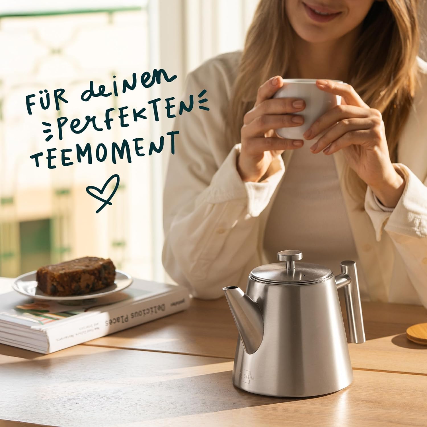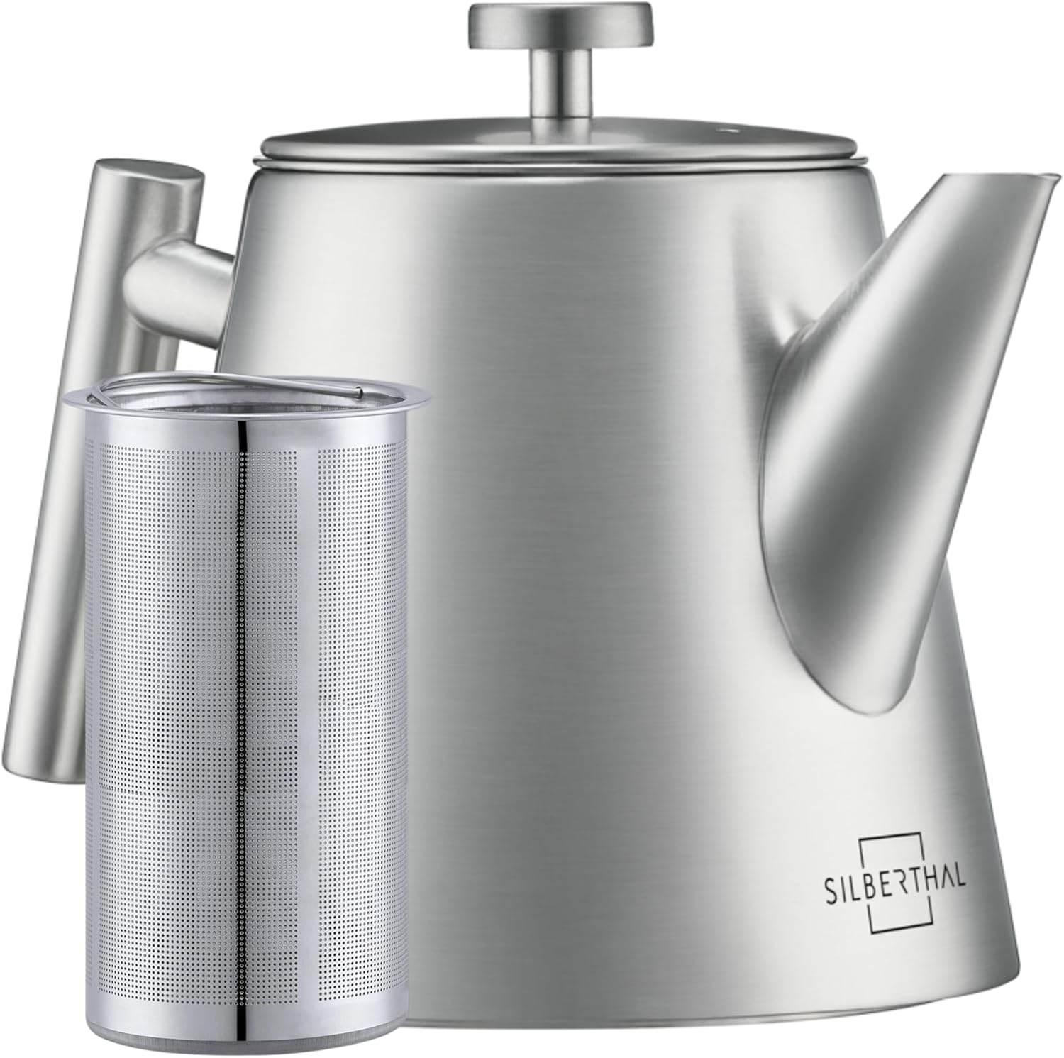 SILBERTHAL Thermo Teekanne mit Siebeinsatz (1L) Silber - Aus Edelstahl - Doppelwandige Kanne mit Deckel - Hält lange warm - Tee Geschenk | قیمت یورویی 44.95€