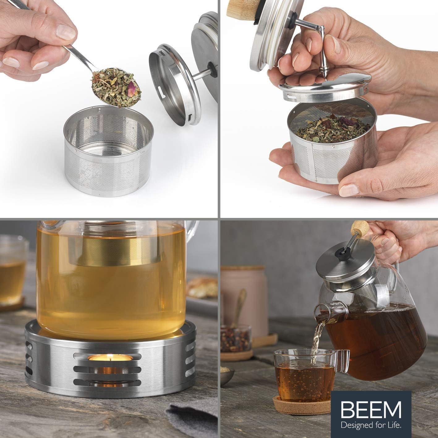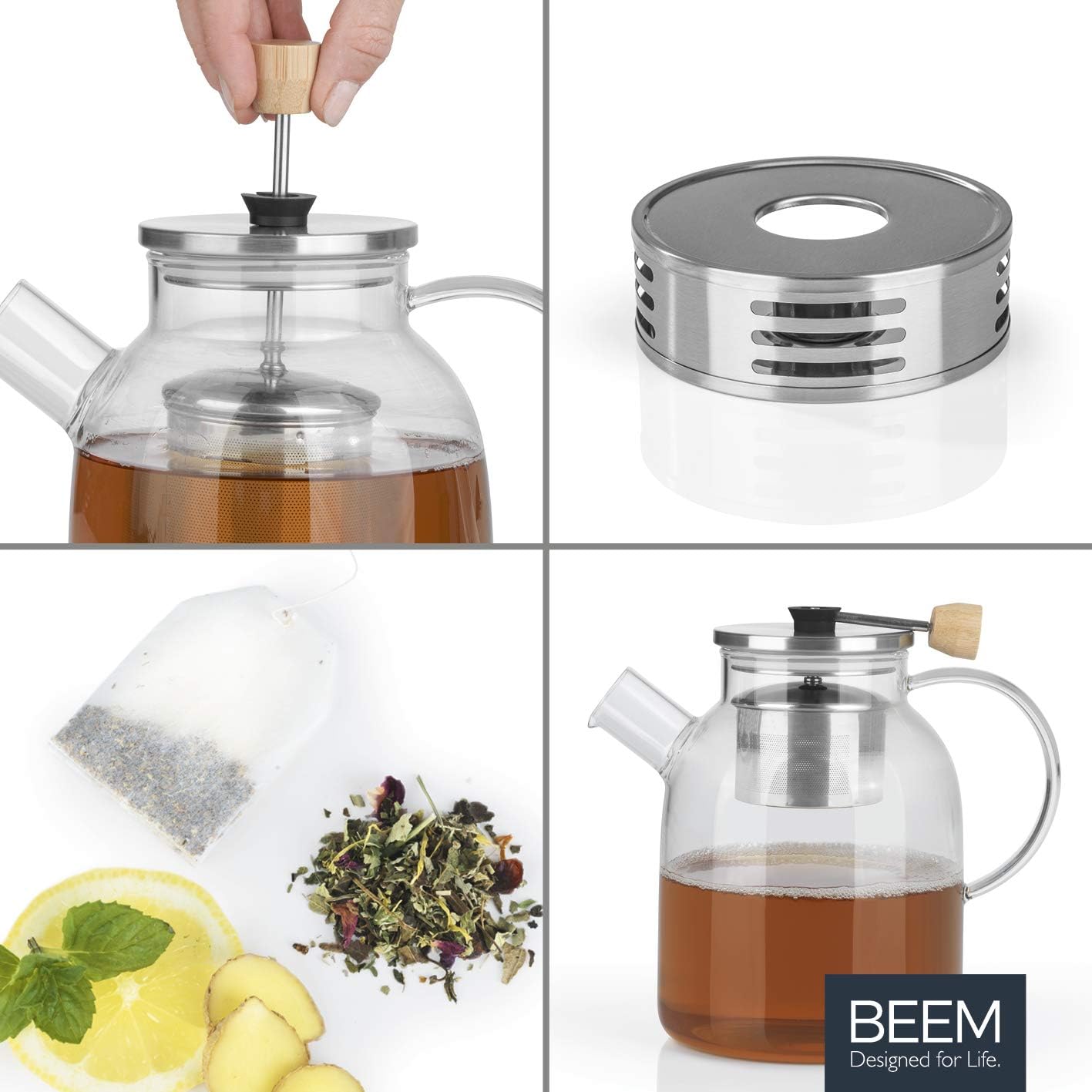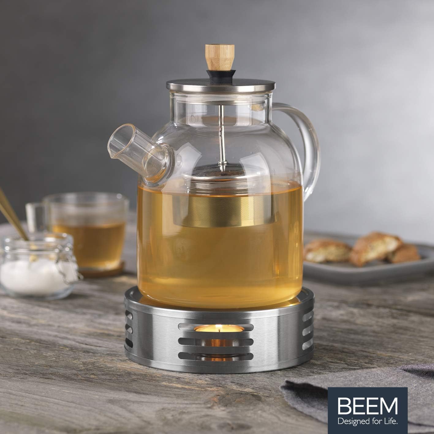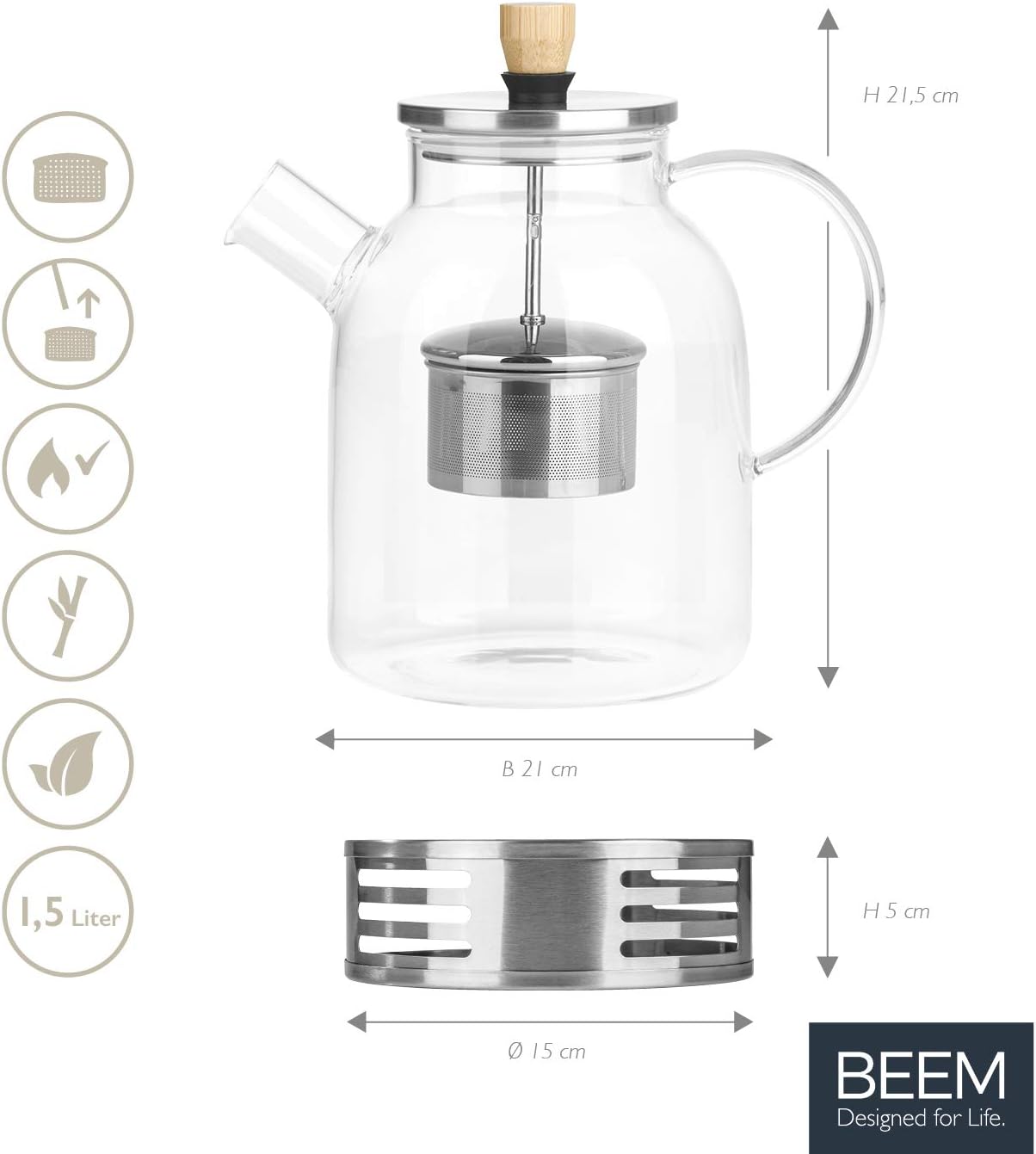 قوری شیشهای بیم آلمان به همراه وارمر - مدل BEEM Tea Pot with Warmer Set ظرفیت 1.5 لیتر