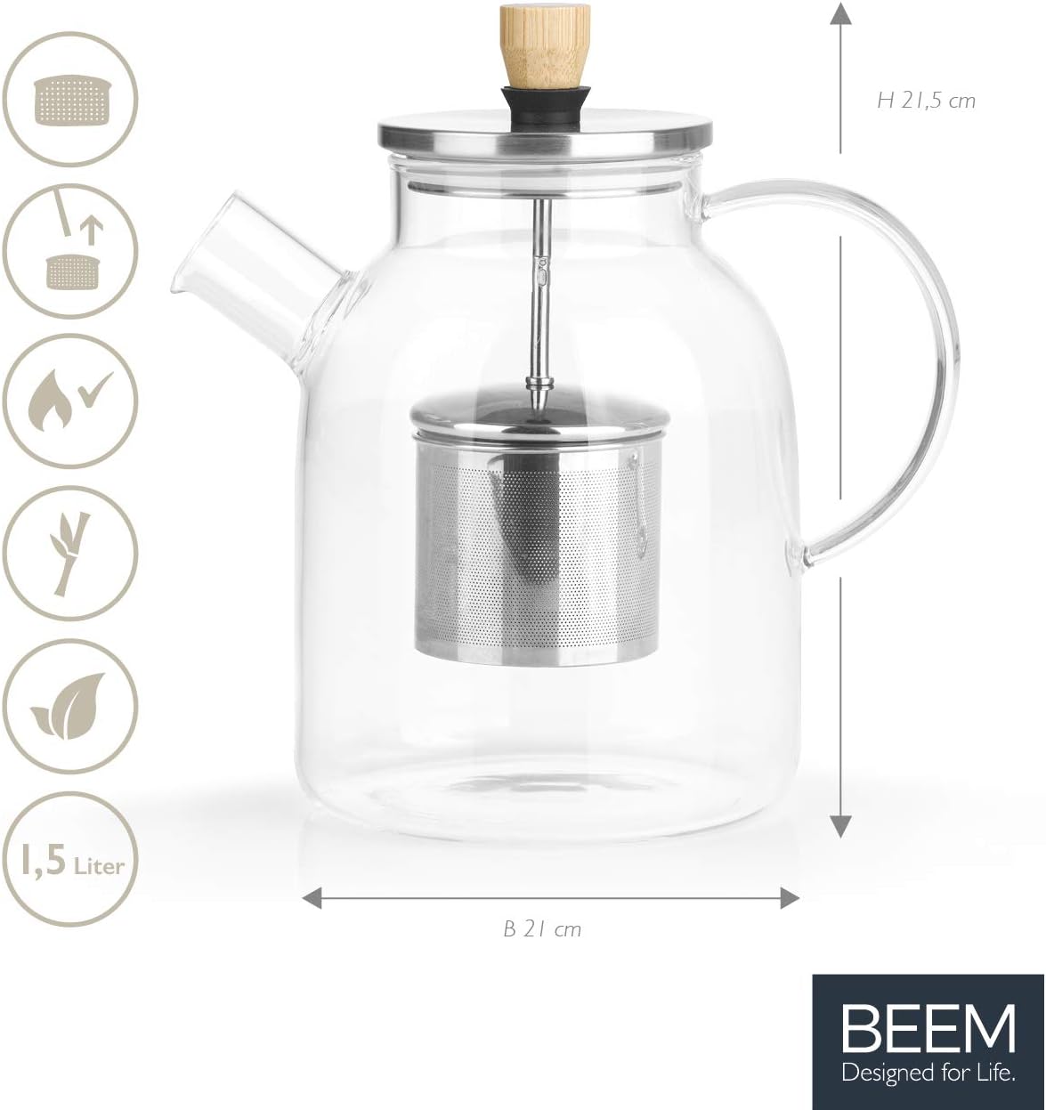 قوری شیشهای بیم آلمان مدل BEEM TEEKANNE Glaskanne با صافی چای و ظرفیت 1.5 لیتر