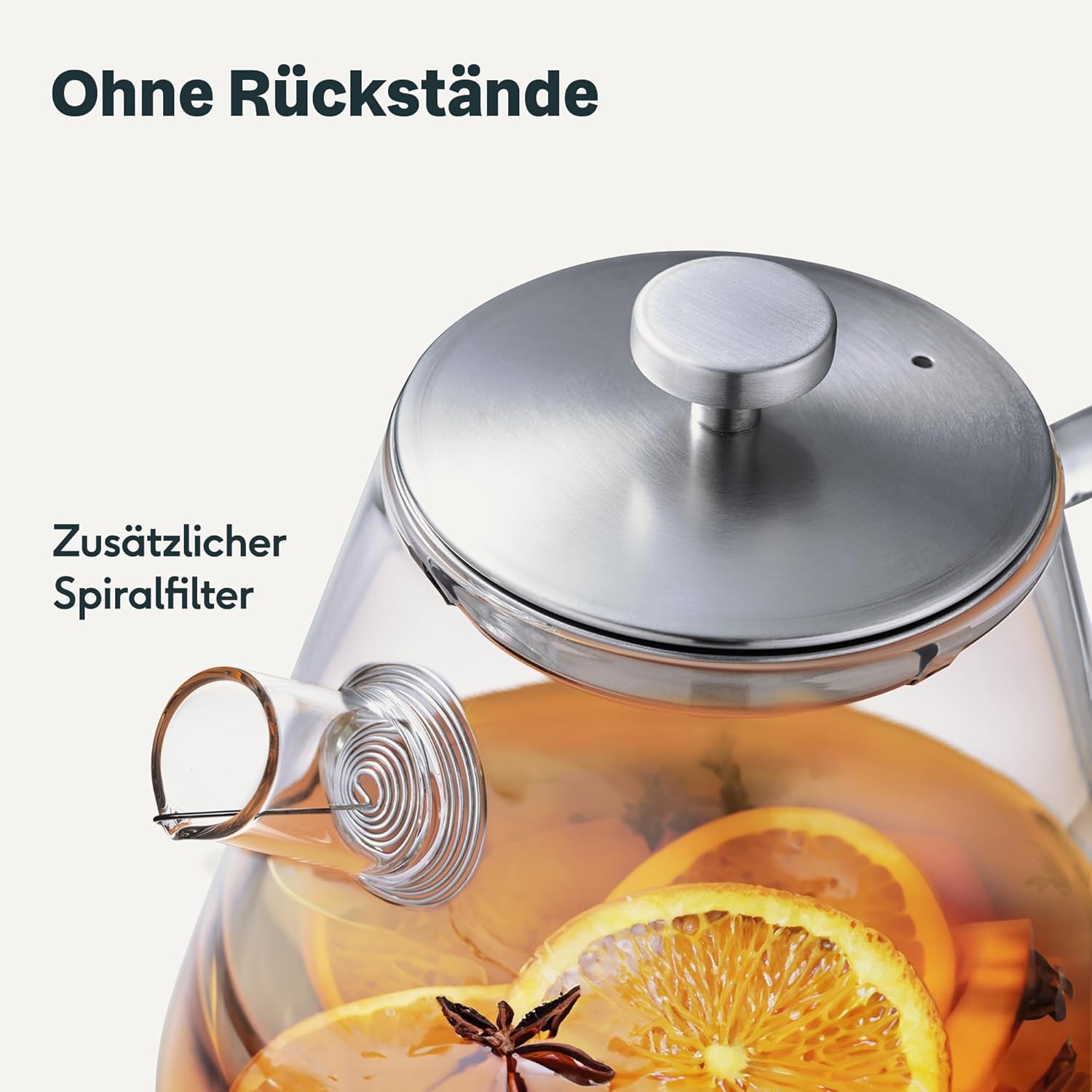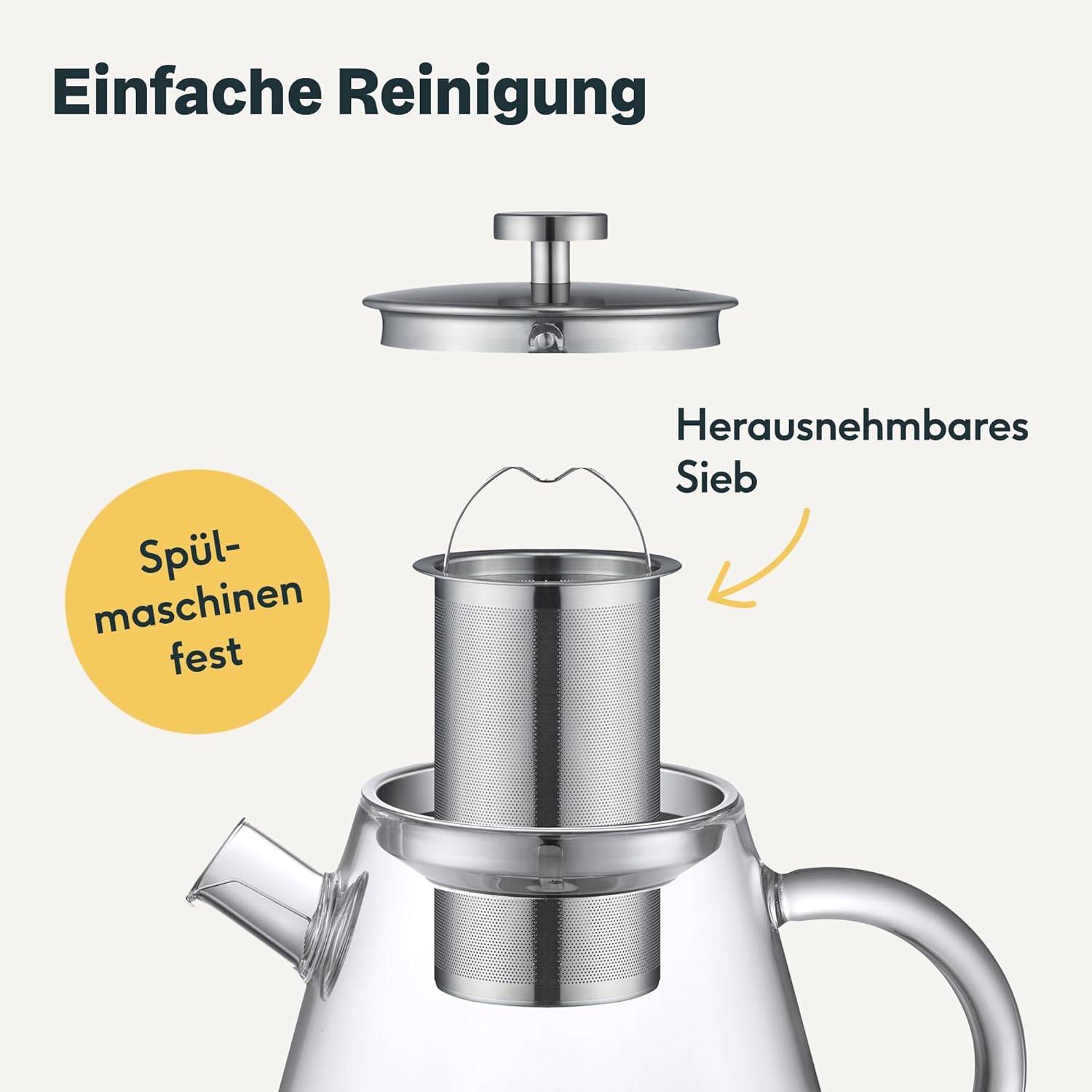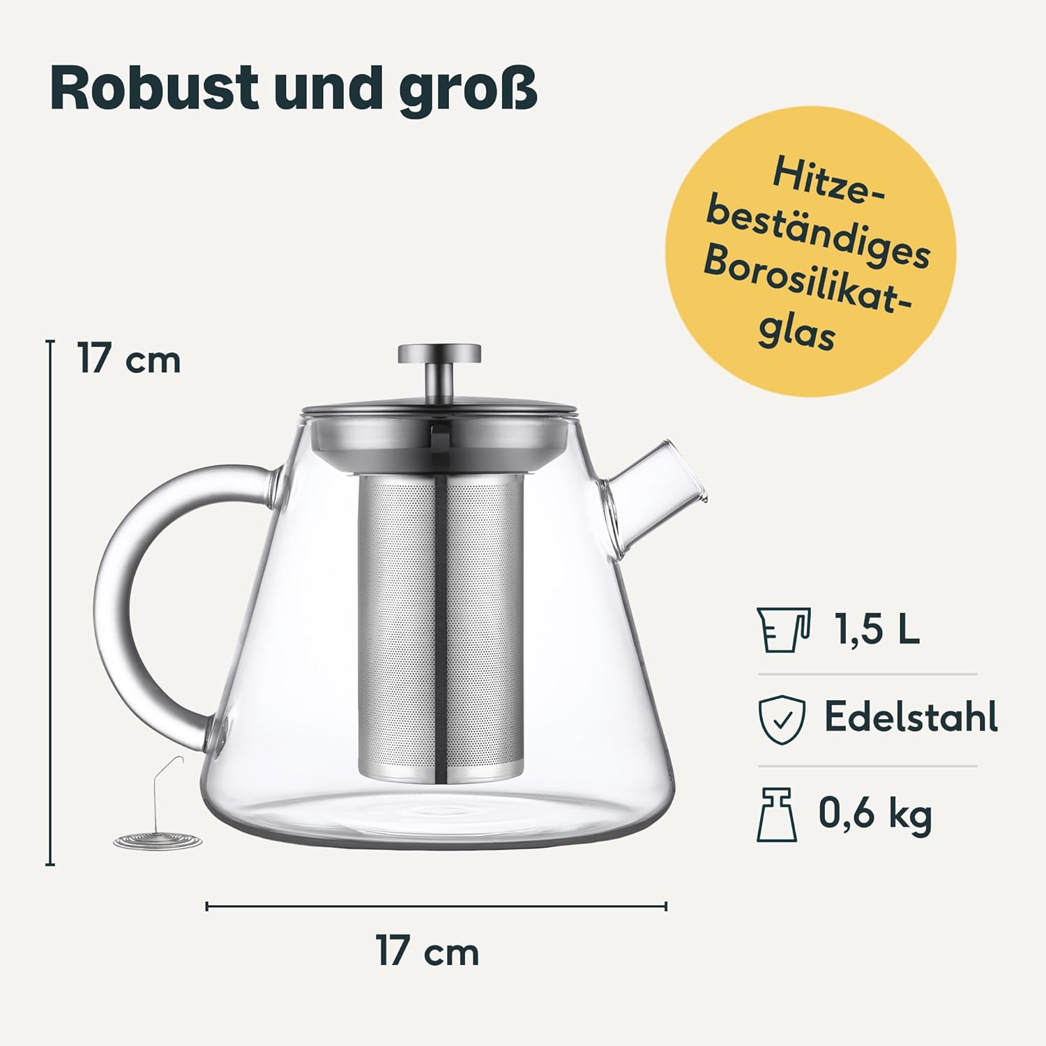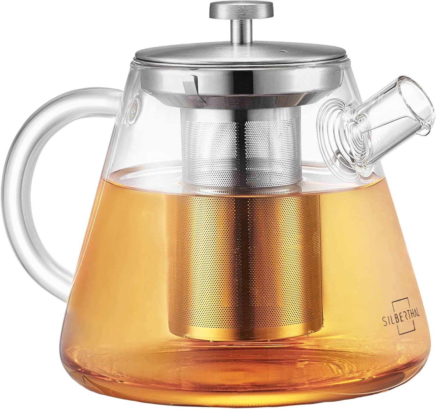 SILBERTHAL Teekanne Glas 1,5 Liter - mit Siebeinsatz & Deckel - Infuser für Heißgetränke & Cold Brew Tea - Ideal für Stövchen Teekanne Glas 1,5l | قیمت یورویی 39.95€