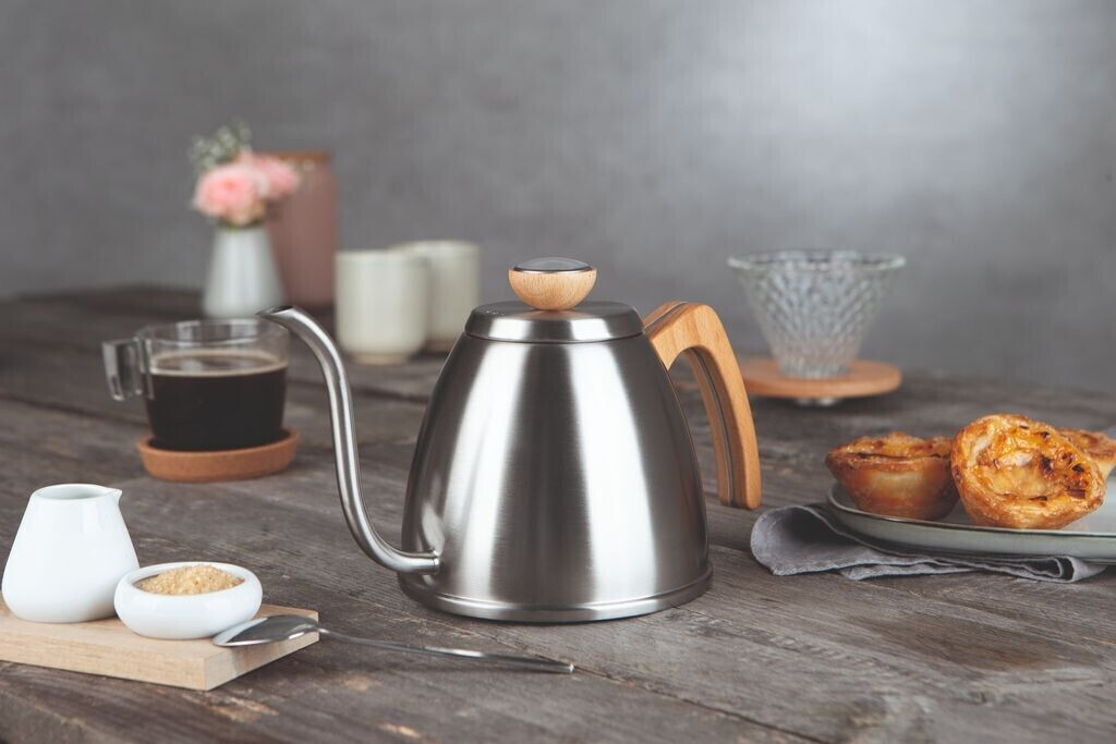 قوری گردن غازی استیل بیم آلمان - مدل Beem Wasserkessel Edelstahl ظرفیت 1 لیتر - با دسته چوبی ارگونومیک و طراحی شیک