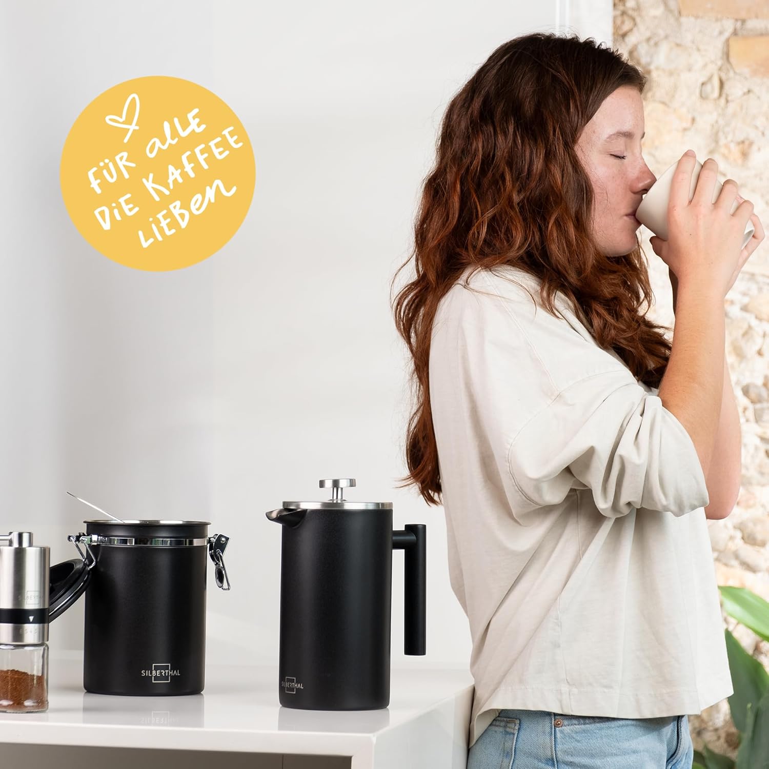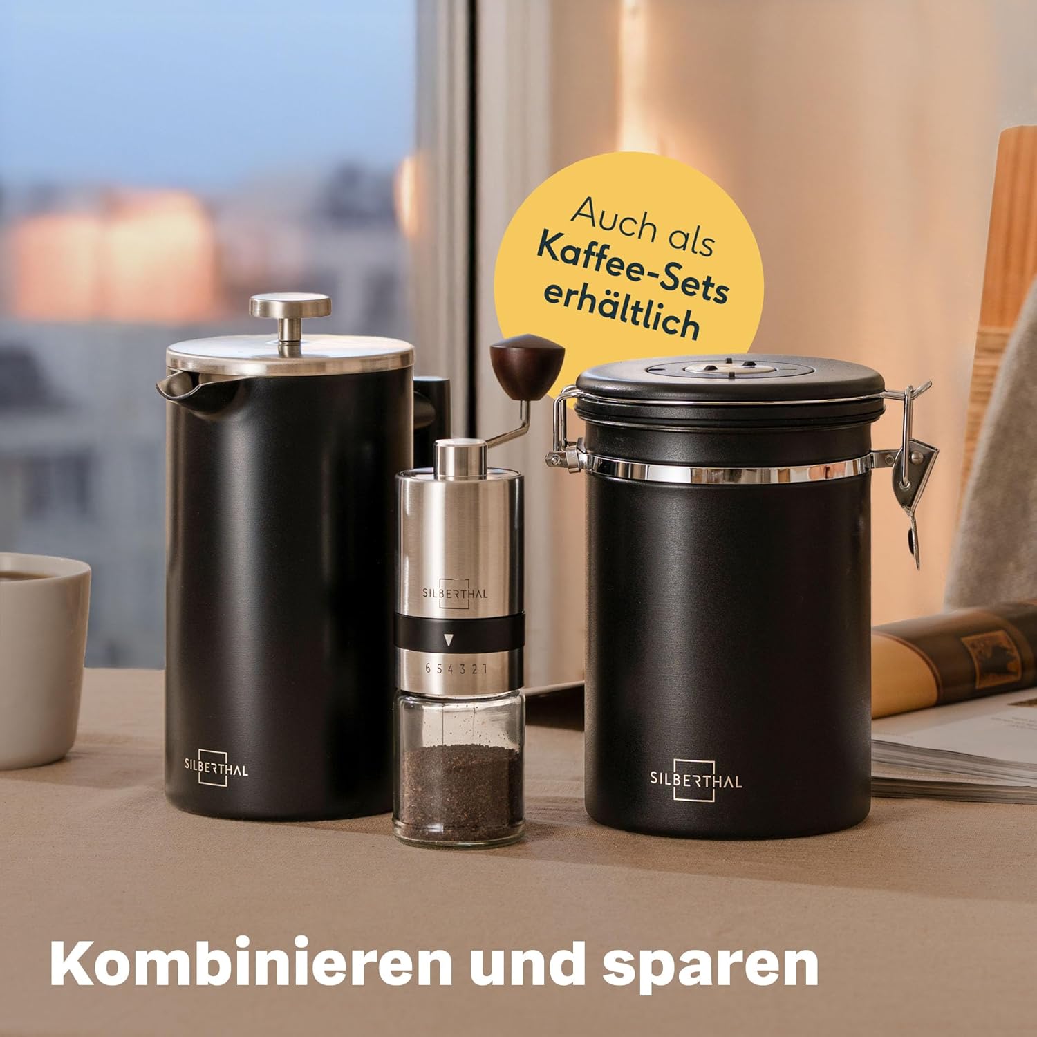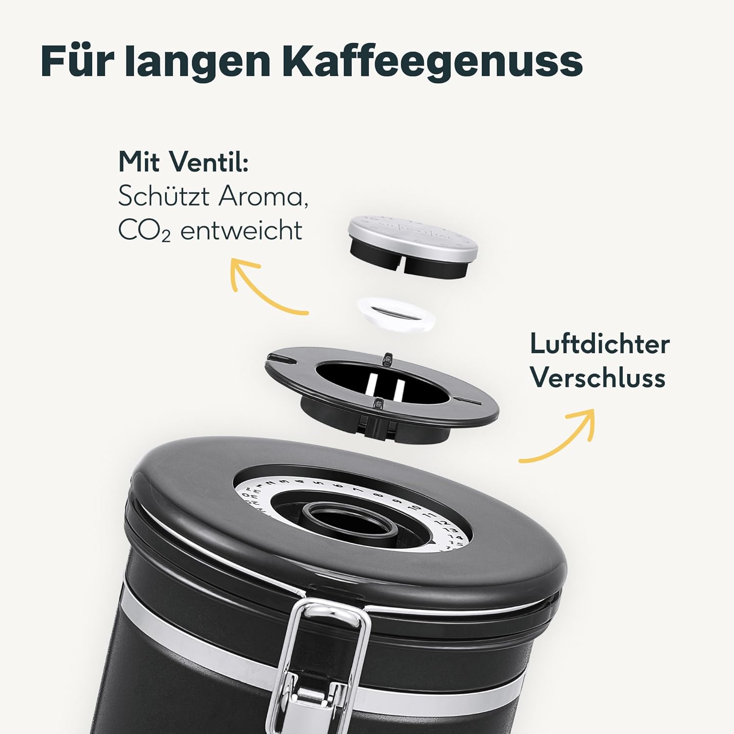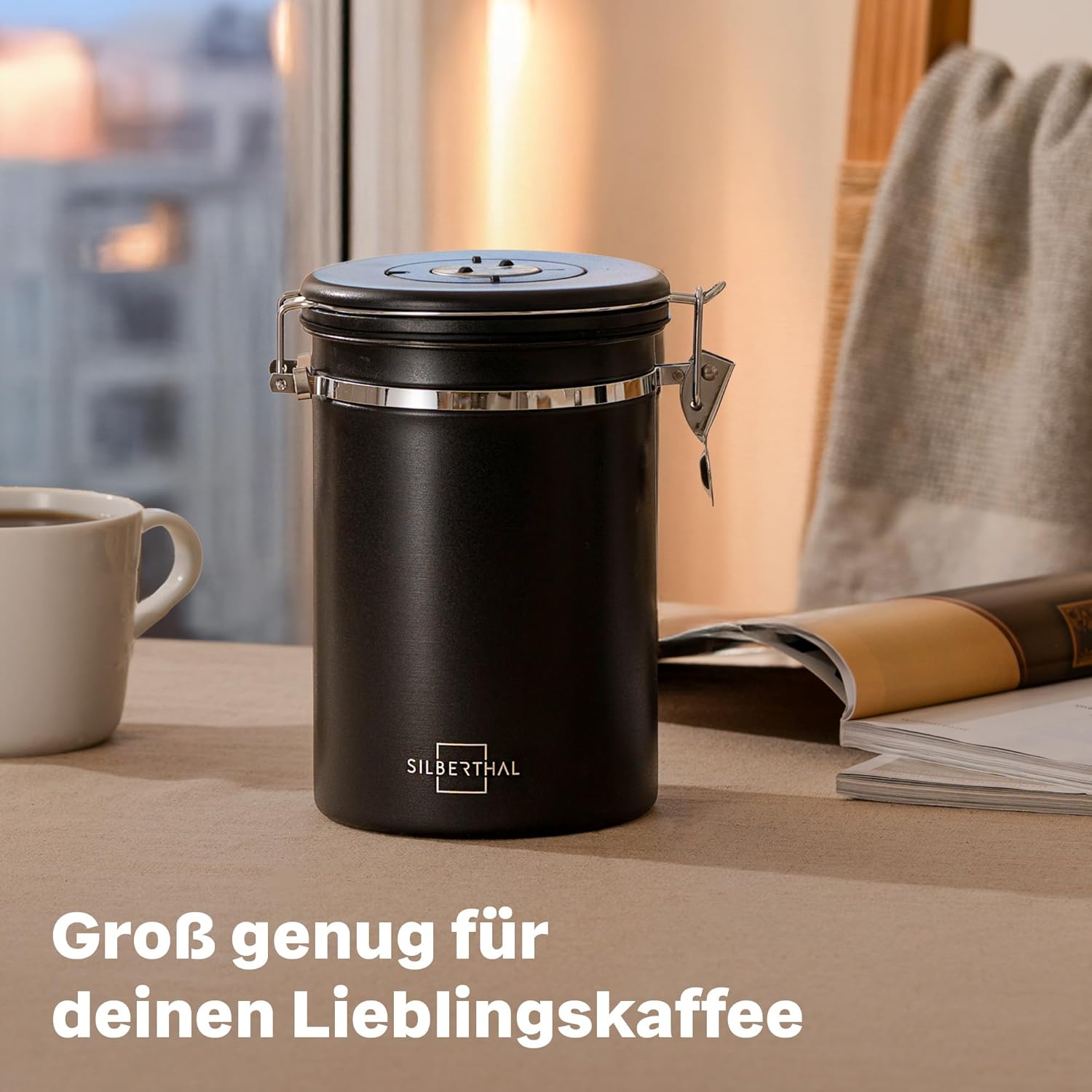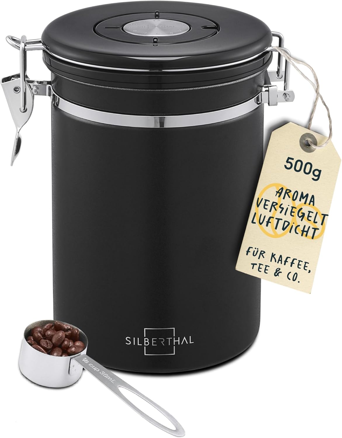 SILBERTHAL Kaffeedose luftdicht 500g - Aromadichte Aufbewahrungsdose für Bohnen & Pulver - Inkl. CO2-Ventil & Dosierlöffel - Schwarz | قیمت یورویی 26.95€