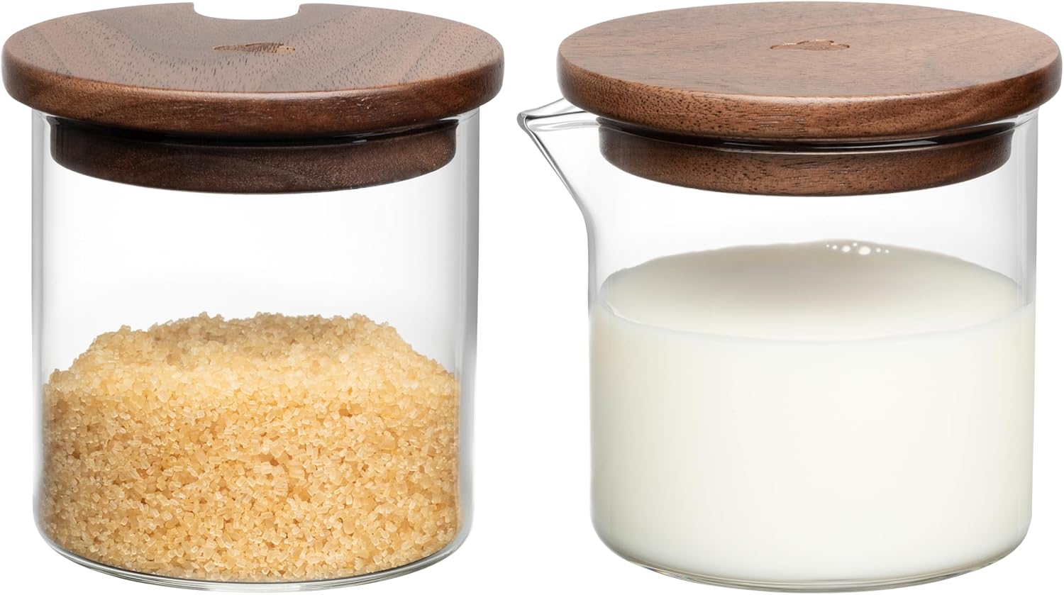 Praktisch & stilvoll: Zuckerbehälter und Milchkännchen im klaren, modernen Look – ideal für Kaffeetafel oder Frühstückstisch. Funktion trifft Form für den täglichen Genussmoment. Durchdachtes Duo: Mit Ausgießer für präzises Portionieren und Deckel mit Löffelaussparung – perfekt abgestimmt für Kaffee, Tee & Co. Einfach im Handling, stark in der Wirkung. Hochwertige Materialien: Gefertigt aus robustem Glas mit edlem Holzdeckel – eine natürliche Kombination, die jedem Tisch Wärme und Charakter verleiht. Vielseitig einsetzbar: Ob für Zucker, Kaffeemilch oder auch Sirup und Süßungsmittel – das Set ergänzt dein Service mit charmanter Funktionalität. Lieferumfang & Maße: Set bestehend aus Zuckerdose und Milchkännchen, klar, 7,5 x 7,8 x 7,8 cm (HxBxT), 0,13 kg | قیمت یورویی : 22.41€