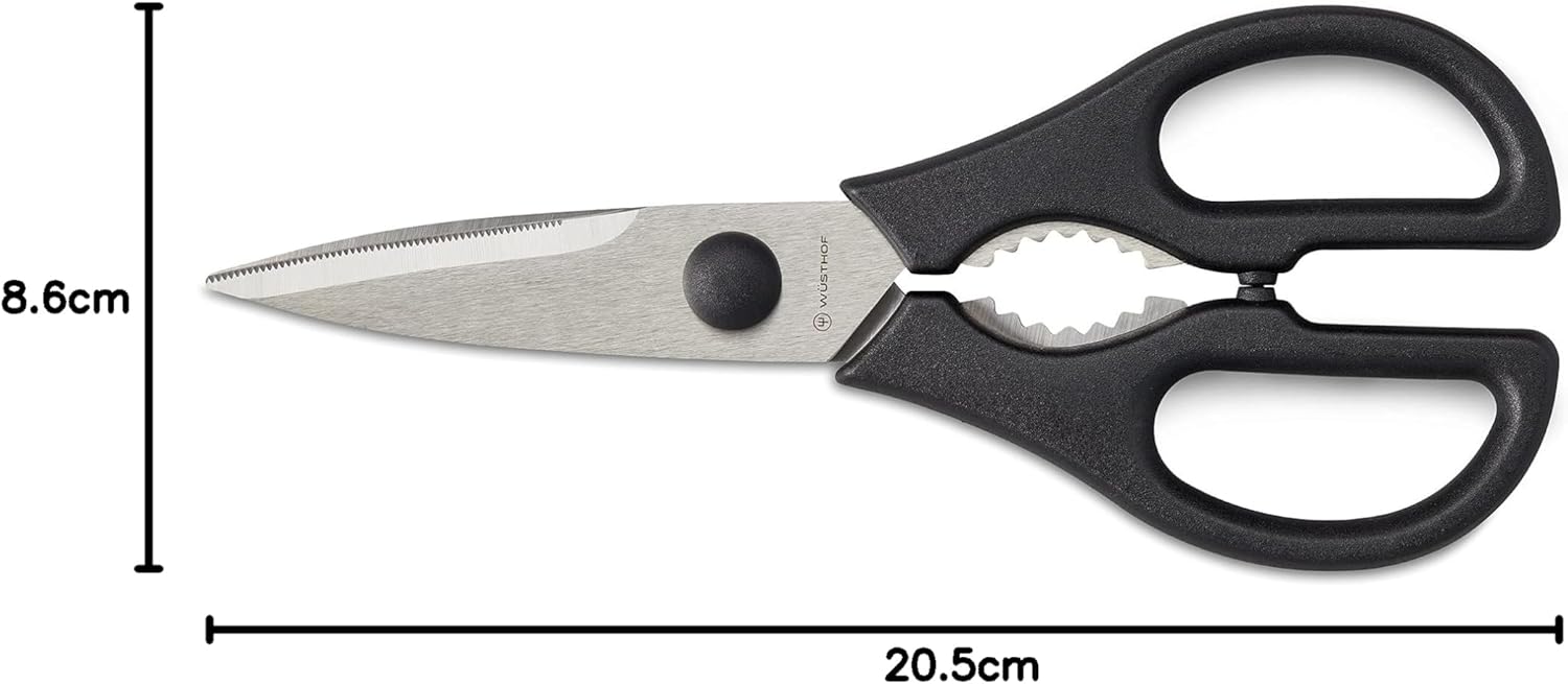 Unentbehrlicher Helfer in jedem Haushalt: Ob als Universalschere oder Haushaltschere, Lebensmittelschere oder Kräuterschere – diese Küchenschere von Wüsthof ist ein richtiges Multitalent und damit ein vielseitiger Klassiker in der Küchenschublade Präzise & langlebig: Die praktische Küchen Schere mit den scharfen Klingen aus rostfreiem Edelstahl wird Sie begeistern: durch den Präzisionsschliff, ergonomisch geformte Griffringe sowie die robuste Verarbeitung Vielseitig: Mit der Vielzweckschere schneiden Sie Lebensmittel wie starke Fischgräten oder Fischflossen genauso präzise wie z.B. Schnittlauch, Blumen, Papier, Kordel, Verpackungen – nützlich ist auch der Drehverschluss-Öffner am Griff Küchenscheren von Wüsthof gibt es in vielen Ausführungen. Weitere hochwertige Küchenhelfer z.B. zur Messer-Aufbewahrung (Messerblock Sets), zum Messer-Schärfen (z.B. Schärfstab, Abziehstein) sowie Profi-Kochmesser finden Sie im Wüsthof Sortiment Wüsthof – seit über 200 Jahren produzieren wir in Solingen professionelle Kochmesser und Küchen-Werkzeuge für den Privat-Haushalt und Profi-Küchen. Wüsthof steht für Schneiden – für den Moment, wenn das Messer mühelos durch frische Lebensmittel gleitet | قیمت یورویی : 19.9€