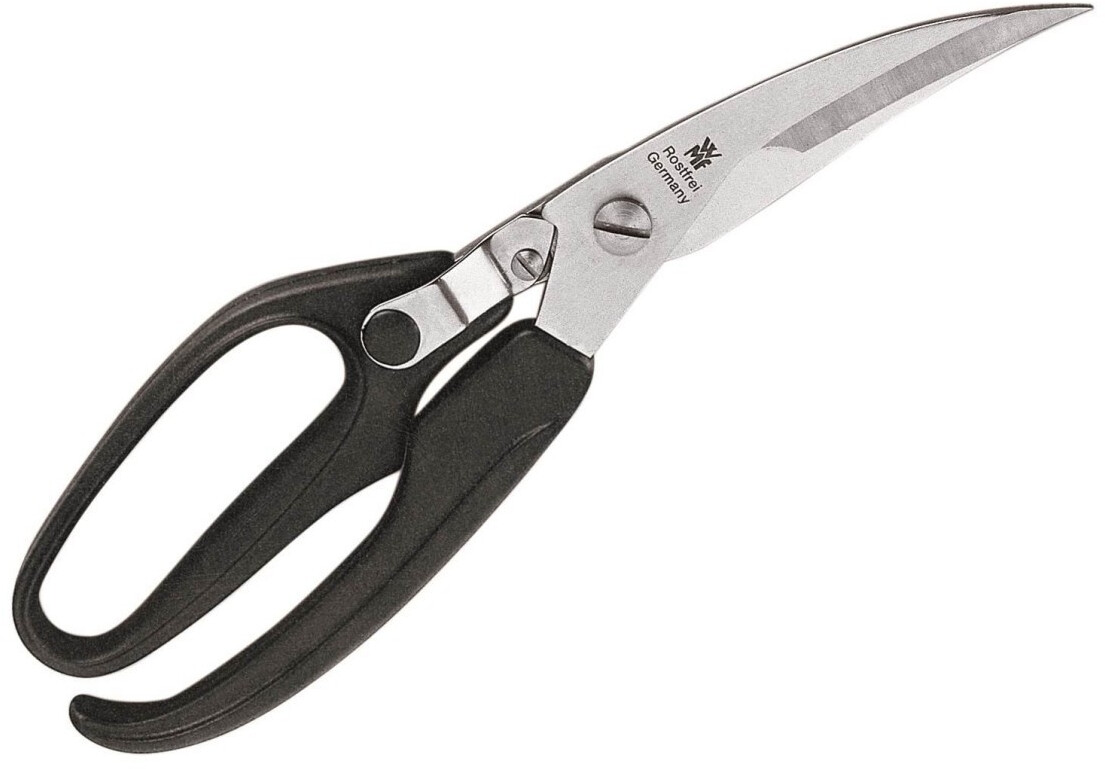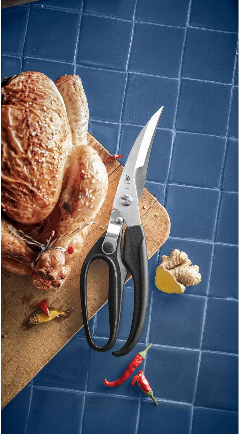 قیچی حرفهای WMF مدل Geflügelschere با طول 24.5 سانتیمتر، ابزاری تخصصی برای برش آسان و دقیق گوشت مرغ و پرنده، با تیغههای استیل ضدزنگ و طراحی ارگونومیک.