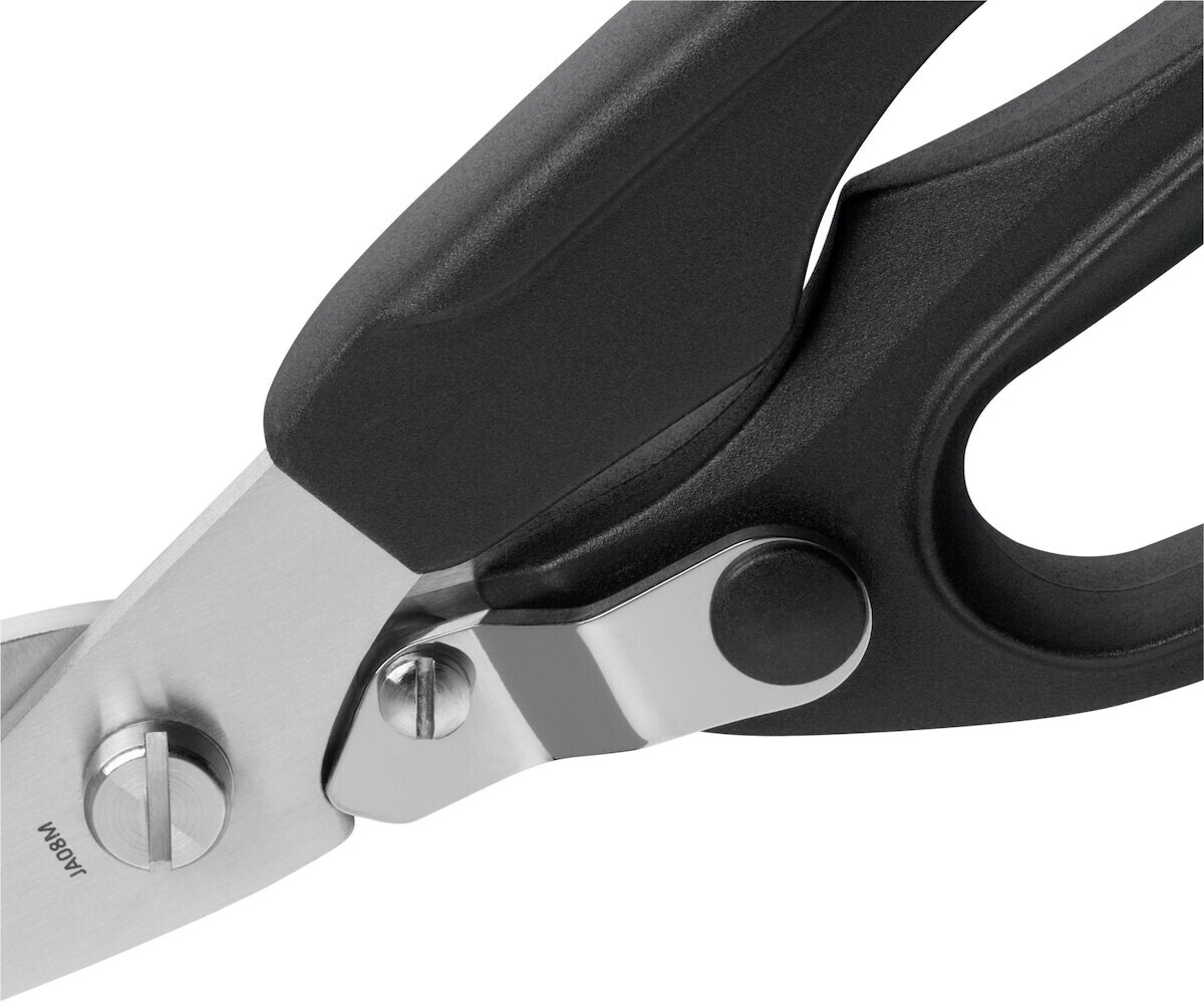 دستههای این قیچی به صورت ارگونومیک طراحی شدهاند تا هنگام برش فشار کمتری به دستان شما وارد شود. همچنین وجود قفل ایمنی در طراحی آن باعث میشود هنگام عدم استفاده، تیغهها بسته بمانند و امنیت کامل حفظ شود. اگر به دنبال ابزاری مطمئن برای برش تمیز مرغ، اردک یا بوقلمون هستید، این قیچی از برند معتبر WMF بهترین انتخاب شما خواهد بود.