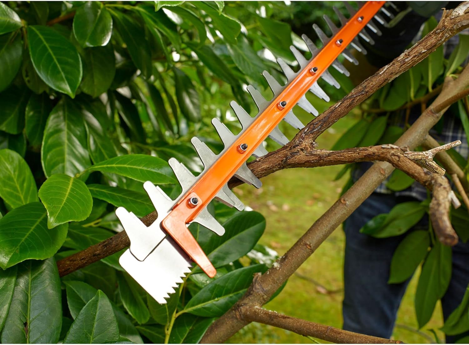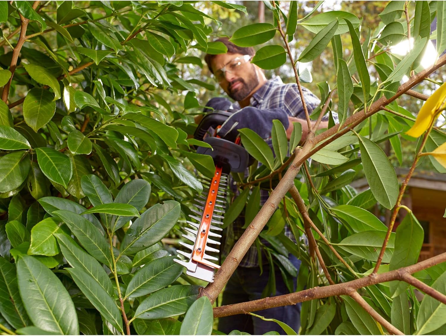 BLACK+DECKER Heckenschere Akku Astschere mit Antiblockierfunktion in Gartenschere verbaut zum Schneiden Dicker Äste und mittlerer bis großer Hecken 18mm Schnittstärke – 18V – 2,6kg leicht GTC1845L20 لینک آمازون : https://www.amazon.de/dp/B0787G6SD9?th=1&psc=1 برش قدرتمند و عملکرد برش بالا: با 600 وات، طول تیغه 60 سانتی متر و ضخامت برش 25 میلی متر، قیچی پرچین BLACK+DECKER برای پرچین های بزرگ مناسب است. نوک تیغه اره برای شاخه های ضخیم: از نوک تیغه اره مخصوص می توان برای بریدن شاخه های ضخیم تر تا قطر 35 میلی متر بدون ابزار اضافی استفاده کرد. دید بهبود یافته: به لطف محافظ دستی شفاف، هنگام کار به صورت عمودی دید خوبی دارید که باعث افزایش دقت و ایمنی می شود. مسیریابی ایمن کابل: تسکین فشار کابل و اتصال مستقیم کابل گسترش، مسیریابی ایمن کابل را بدون کشیدن تصادفی دوشاخه تضمین می کند. انعطاف پذیری بالا: به دلیل عملکرد بی سیم هیچ خطری برای برش کابل وجود ندارد، دسته راحتی کار بالا را با کنترل خوب تضمین می کند. سبک و خوش دست: با وزن تنها 2.6 کیلوگرم، ماشین اصلاح پرچین سبک و کار با آن آسان است و باغبانی را بسیار آسان تر می کند. شارژر سریع: شارژر سریع همراه تضمین میکند که ماشین اصلاح سریع آماده استفاده مجدد است، بنابراین میتوانید بدون وقفه طولانی به کار باغبانی خود ادامه دهید. چاقوهای بادوام: چاقوهای با روکش ویژه عمر طولانی را تضمین میکنند و حتی با استفاده زیاد تیز و کارآمد میمانند. اعتماد به BLACK+DECKER: BLACK+DECKER برای چندین دهه از کیفیت و قابلیت اطمینان برخوردار بوده است. به یک محصول اثبات شده که فراتر از انتظارات شماست اعتماد کنید محدوده تحویل: 1 عدد موبر پرچین برقی، 1 عدد پوشش محافظ تیغه، هر آنچه برای باغبانی کامل و ایمن نیاز دارید
