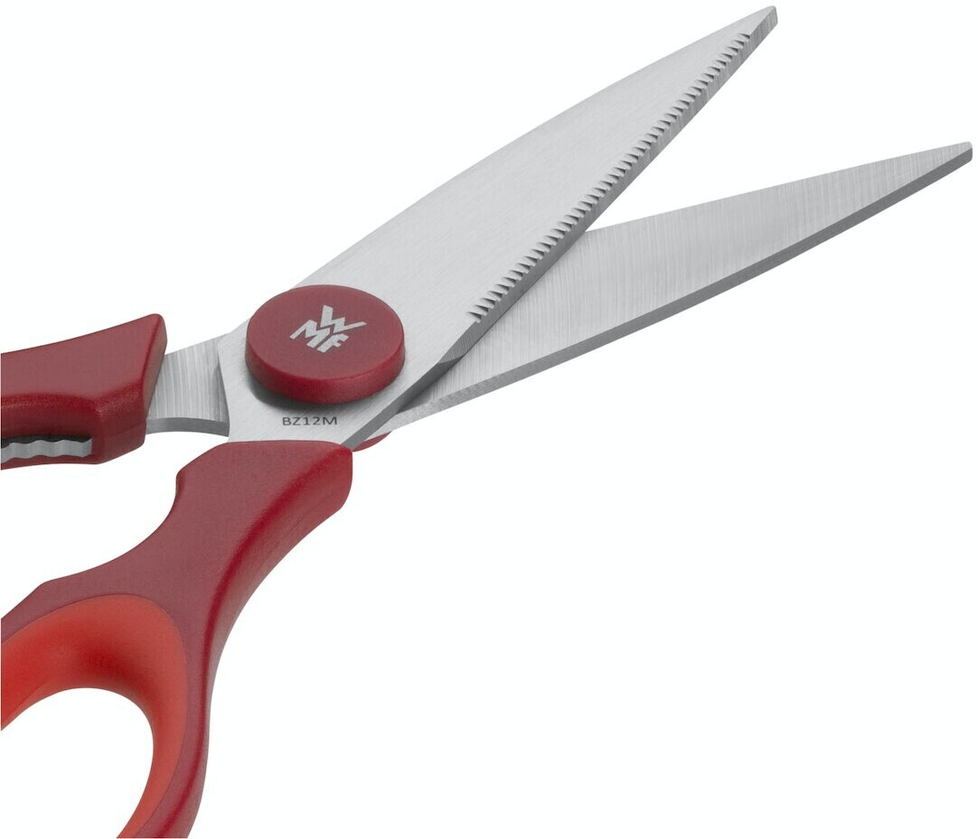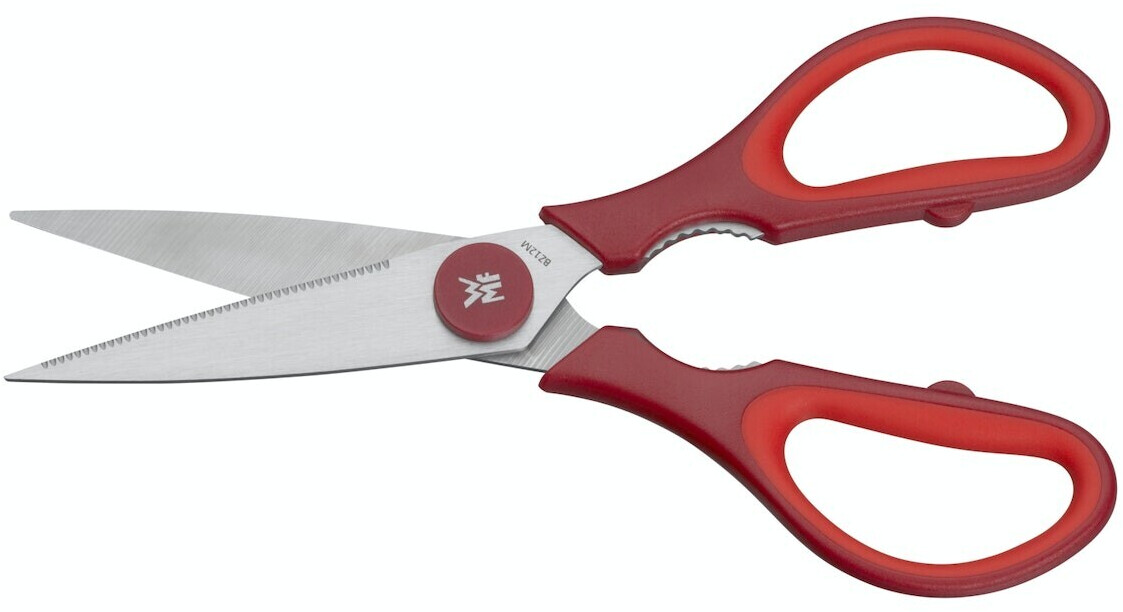 قیچی آشپزخانه WMF مدل Touch با تیغه استیل ضدزنگ تیز و بادوام و دسته نرم قرمز رنگ با طراحی ارگونومیک، ابزاری کاربردی و زیبا برای هر آشپزخانهای است.