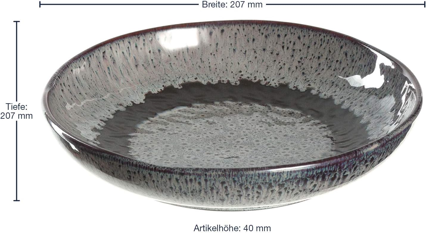 Funktional: Selbstverständlich geeignet für die Spülmaschine und die Mikrowelle - Absolut alltagstauglich! Und einfach zu verstauen, da problemlos stapelbar Handgemacht: Durch die handaufgetragene Effekt- Glasur ergeben sich individuelle Farbverläufe und Muster - Zudem ist die Oberfläche angenehm glatt, sehr widerstandsfähig und langlebig Farbmix als Highlight: Kombinieren Sie die Produkte der Matera Serie untereinander oder auch mit der Kelchglasserie "Lucente" - So erhalten Sie ein wunderschönes, rustikales Tischbild Praktisches Set: Dieses Set enthält 6 tiefe Teller aus der Leonardo "Matera" Serie - Sie sind ideal geeignet für Salate, Suppen oder auch Pasta Lieferumfang & Maße: 6 tiefe Design-Teller, Durchmesser pro plate: Ø 20,7 cm, Höhe 4 cm, Geschirrset 6 Personen | قیمت یورویی : 59.9€