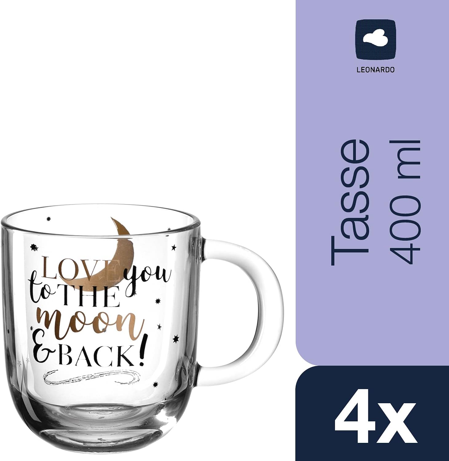 LEONARDO HOME 046450 EMOZIONE Tasse 400 ml mehrfarbig 'Love you to.' 4er-Set, Glas 4 Tassen love you to the moon | قیمت یورویی 37.89€