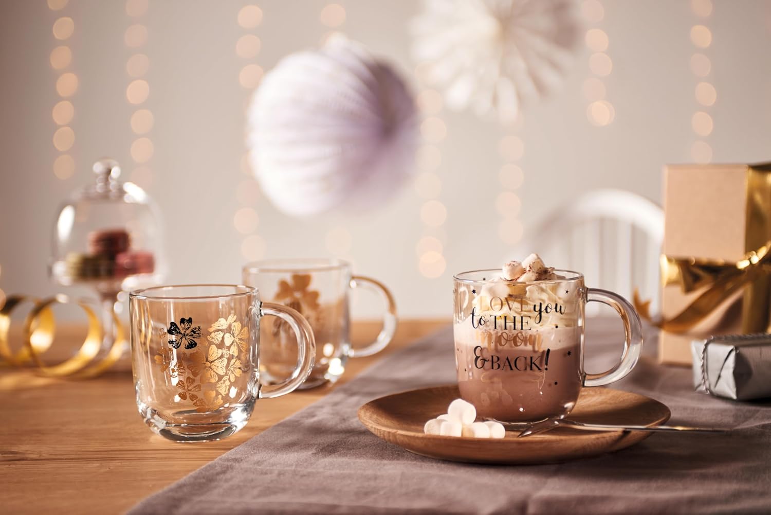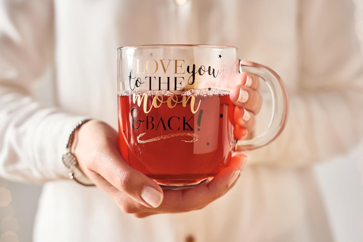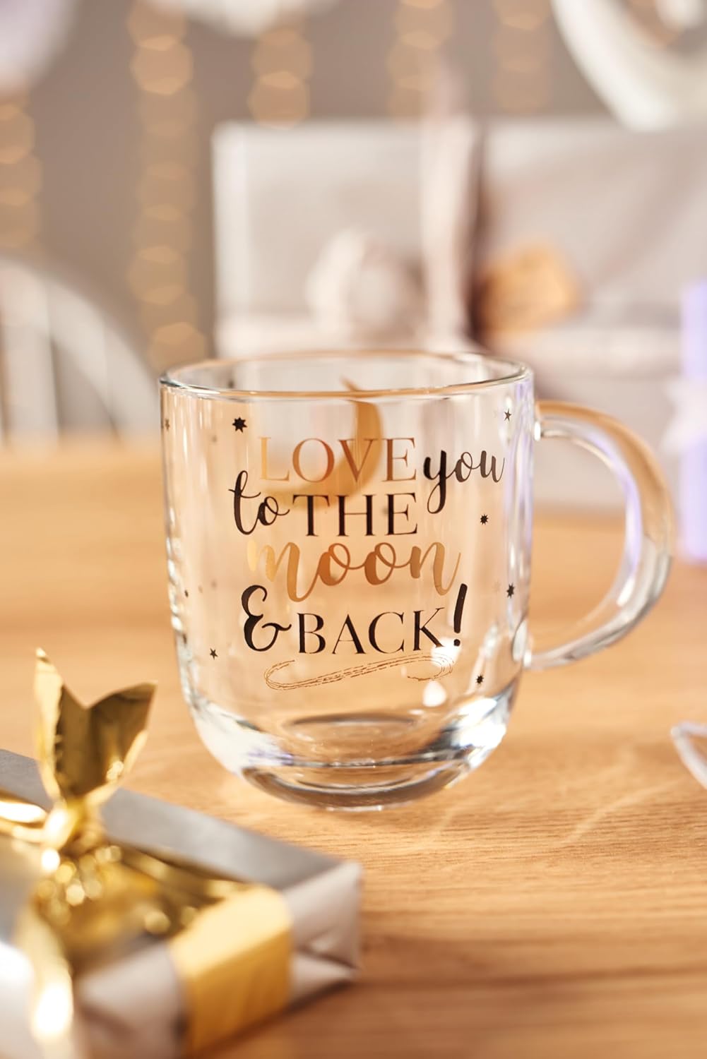 LEONARDO HOME 046450 EMOZIONE Tasse 400 ml mehrfarbig 'Love you to.' 4er-Set, Glas 4 Tassen love you to the moon لینک آمازون : https://www.amazon.de/dp/B07WPBW2G5?th=1&psc=1 ماگ شیشهای کاربردی: این ماگ برای تمام نوشیدنیهای گرم تا دمای ۱۰۰ درجه سانتیگراد مناسب است. نوشیدنیهایی مانند قهوه و چای را میتوان به راحتی در ماگ شیشهای چاپ شده در مایکروویو گرم کرد. دسته کوچک آن امکان حمل و نقل ایمن و آسان را فراهم میکند. قابل شستشو در ماشین ظرفشویی: فنجانهای قهوه شیشهای چاپ شده را میتوان به راحتی در ماشین ظرفشویی بدون محو شدن تمیز کرد. این ویژگی، ماگهای شیشهای دستهدار را برای استفاده روزمره ایدهآل میکند. طراحی عاشقانه: نوشته طلایی «تنها چیزی که نیاز دارید عشق است» هنگام نوشیدن حال و هوای خوبی به شما میدهد. پیام عاشقانه روی لیوانهای شیشهای، آنها را به هدیهای ایدهآل برای دوستان و خانواده تبدیل میکند. کیفیت بالا: لئوناردو نماد طراحی ظریف و نوآورانه است. فنجانهای شیشهای Emozione با ظاهر زیبا، چاپ با کیفیت بالا و کیفیت مشهور لئوناردو، توجه را به خود جلب میکنند. دامنه تحویل و ابعاد: ۴ فنجان هدیه، ابعاد هر فنجان شیشهای: ۱۰ × ۱۲.۵ × ۸.۷ سانتیمتر (ارتفاع × عرض × عمق)، ۳۸۰ گرم، ۳۰۰ میلیلیتر محتوای قابل استفاده، ۴۰۰ میلیلیتر تا لبه پر