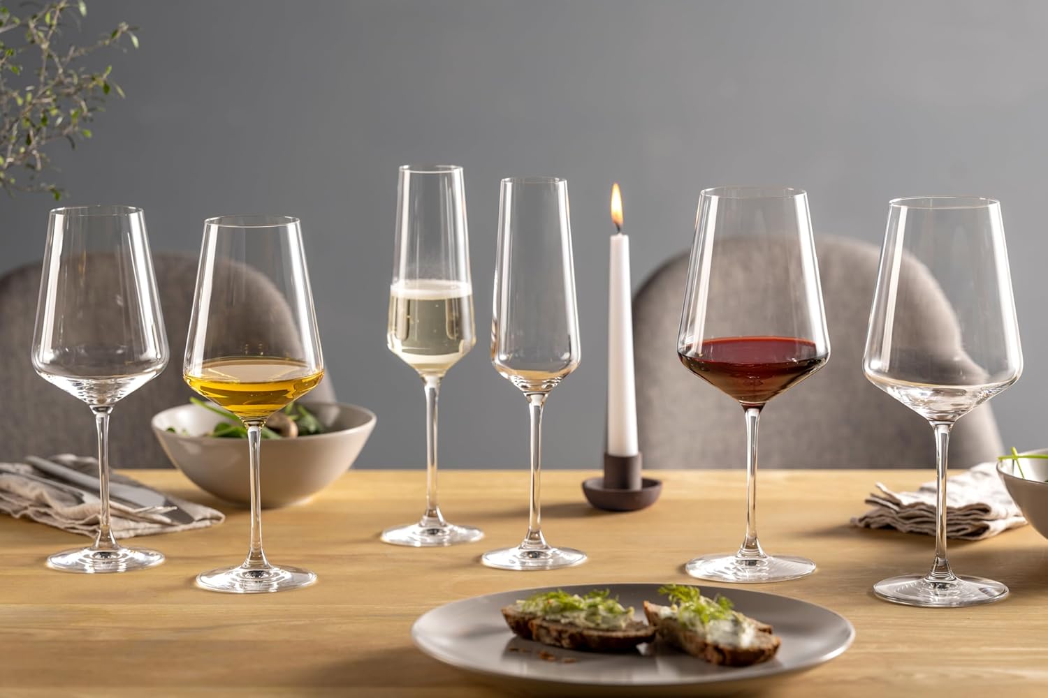Hohe Qualität: Unsere Teqton Produkte überzeugen durch eine größere Oberflächenhärte welches die Wassergläser besonders stabil und kratzfest macht und für eine dauerhafte Brillanz und eine ungetrübte Transparenz ist also gesorgt Spülmaschinenfest: Die Trink-Gläser lassen sich komfortabel in der Spülmaschine reinigen und diese Trink-Becher aus Glas sind mit einem Schutzschild gegen Glaskorrosion ausgestattet, welcher für dauerhaften Glanz sorgt Klangvoll: Die besondere Form und Verarbeitung der hochwertigen Teqton Gläser sorgt für tollen Klang beim Anstoßen, hohe Standfestigkeit und sehr gute Aromaentfaltung - die hohe Wertigkeit der Gläser unterstreicht der gezogene Stiel Design-Allrounder: Das Gläserset hat die moderne Form der Leonardo Serie Puccini, lässt sich also ideal mit weiteren Puccini Produkten kombinieren und sorgt für ein schönes Tischbild Lieferumfang & Maße: 6 x Sekt, 26 x 7,2 cm, Kuppa 14,4 cm, 220 ml Nutzinhalt, 280 ml randvoll - 6 x Rotwein, 25 x 10,5 cm, Kuppa 14,1 cm, 120 ml Nutzinhalt, 750 ml randvoll - 6 x Weisswein, 24 x 9,5 cm, Kuppa 13 cm, 100 ml Nutzinhalt, 560 ml randvoll | قیمت یورویی : 89.99€