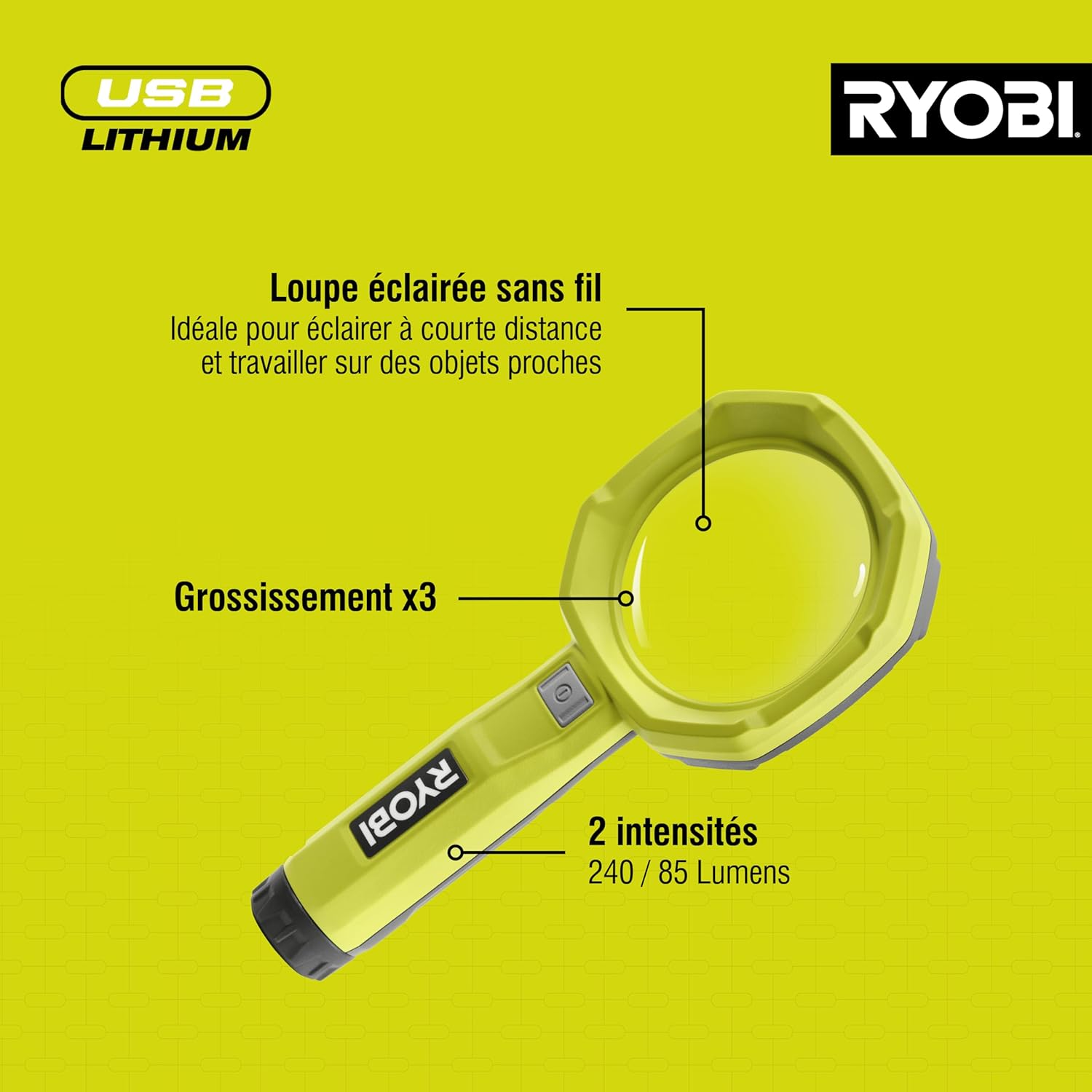 RYOBI 4 V USB-LITHIUM Akku-Lupenleuchte RML4-0, 2 Intensitäten: 60/200 Lumen, 3-fache Vergrößerung, ohne Akku und Ladegerät | قیمت یورویی 39.99€