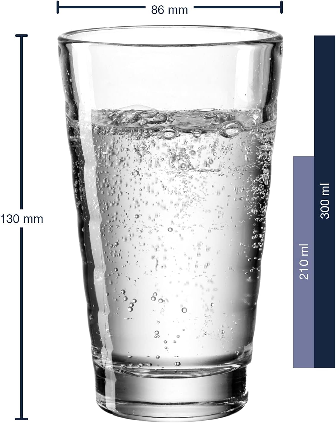 لیوانهای آب لئوناردو هوم اوندا، ۱۲ پارچه (بسته ۱ عددی)، لیوانهای آبمیوه قابل شستشو در ماشین ظرفشویی، فنجانهای شیشهای طرحدار، ۱۲ پارچه، ۲۱۰ میلیلیتر، ۳۰۰ میلیلیتر، شفاف، ۰۱۱۰۱۹