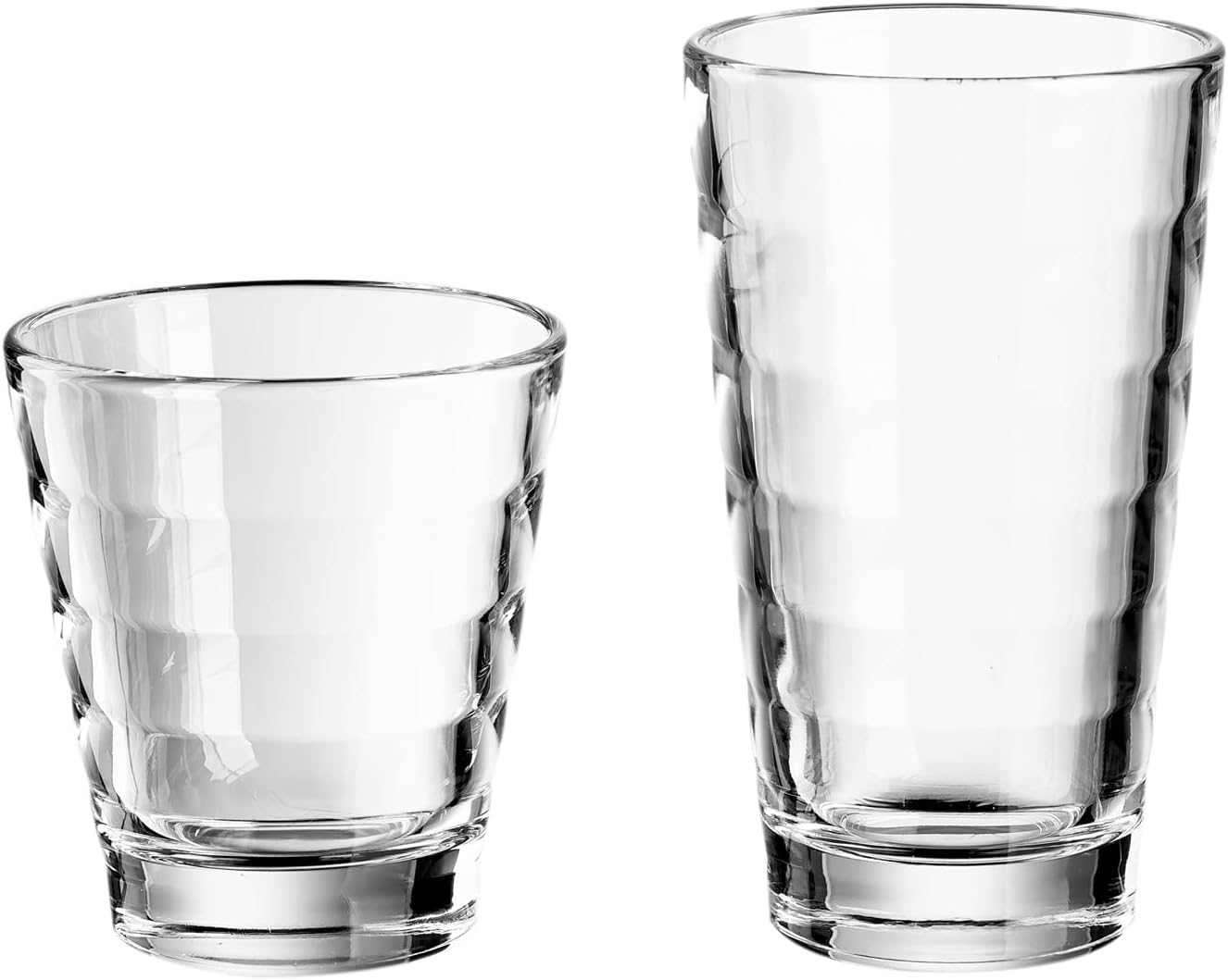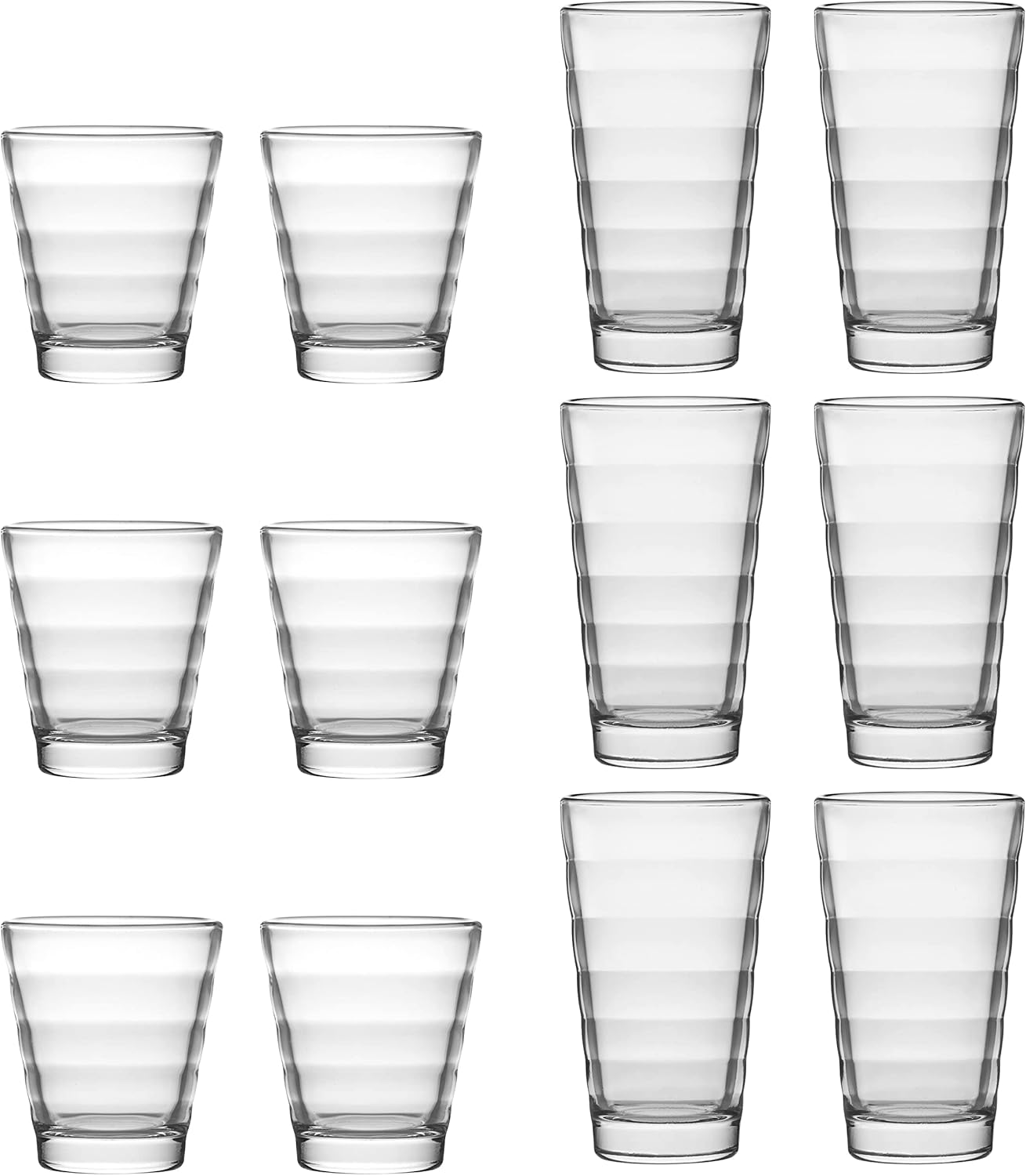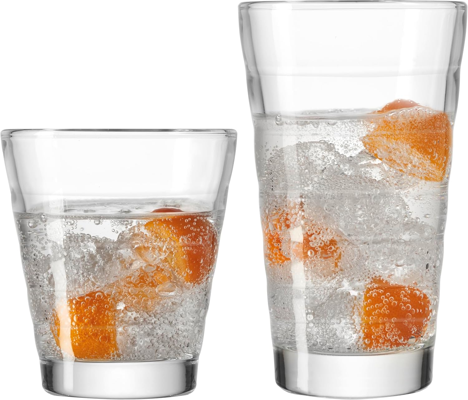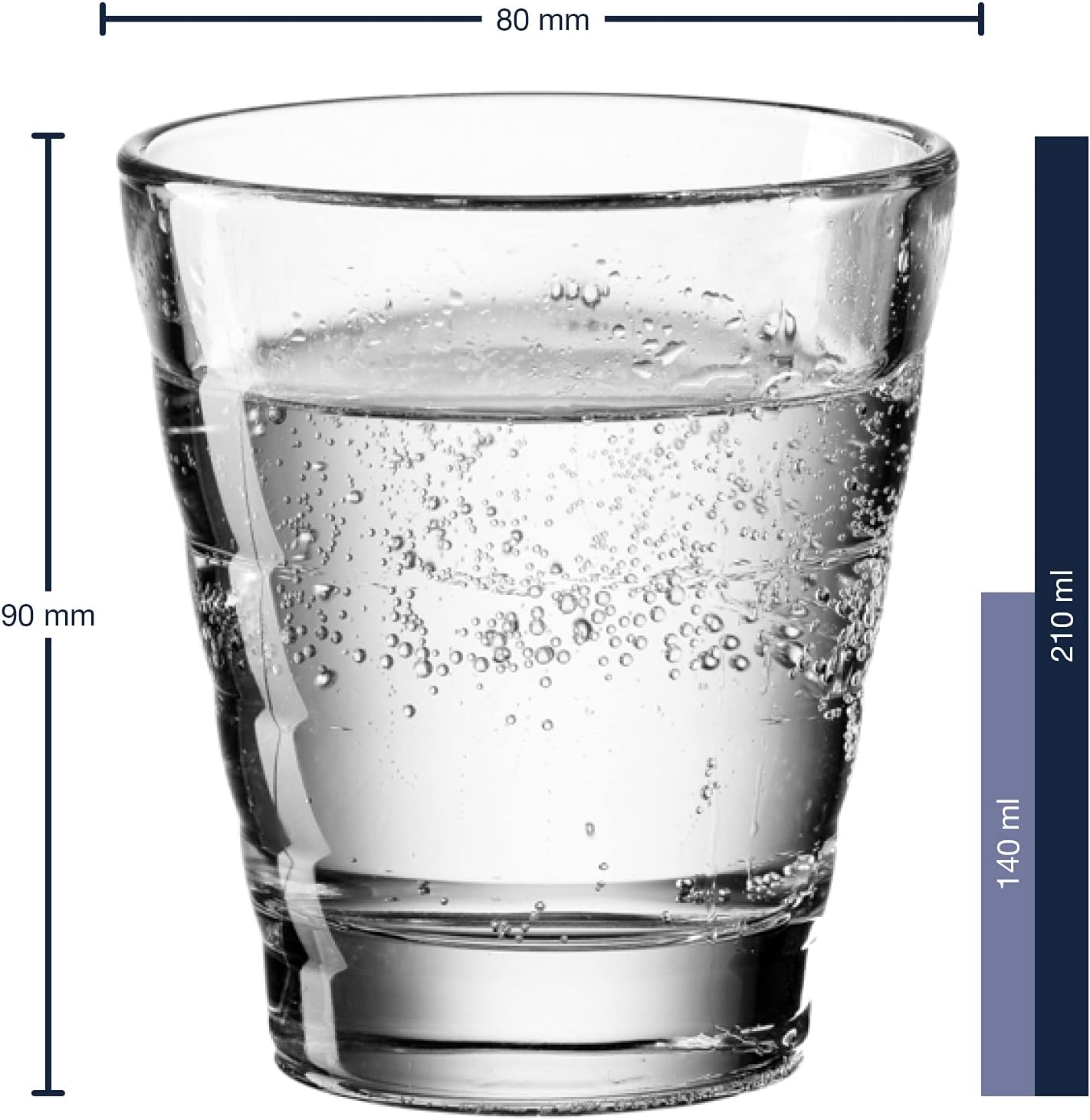 LEONARDO HOME Onda Wasser-Gläser, 12 Stück (1er Pack), spülmaschinengeeignete Saft-Gläser, Trink-Becher aus Glas mit Muster, 12 teilig, 210 ml, 300 ml, Klar, 011019 | قیمت یورویی 22.25€