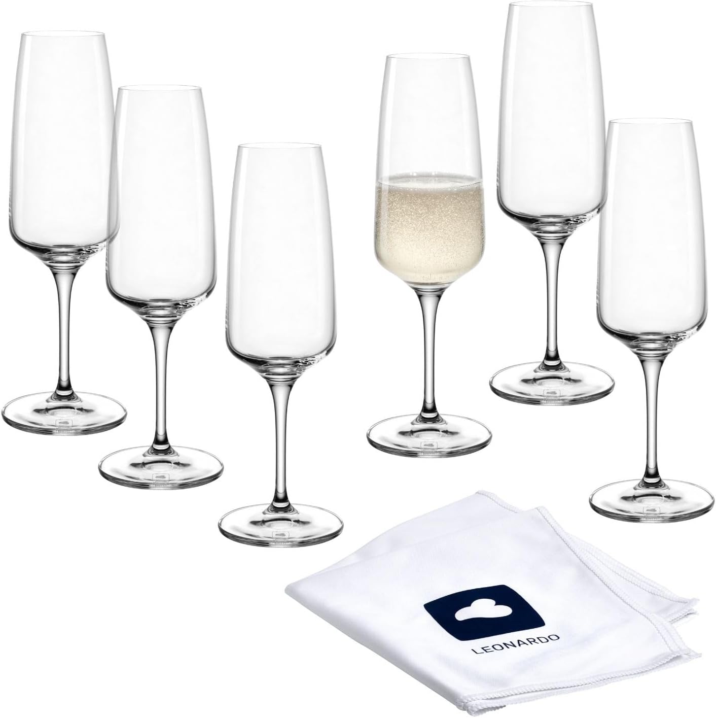 LEONARDO HOME Sektgläser CESTI (6er Set) inkl. Poliertuch • Spülmaschinenfeste Prosecco-Kelche (240 ml) • Stoßfest & Alltagstauglich • Sekt-Gläser mit niedrigem Stiel • Champagner-Glas Cesti • 040968 6 Sektgläser + Poliertuch | قیمت یورویی 37.89€
