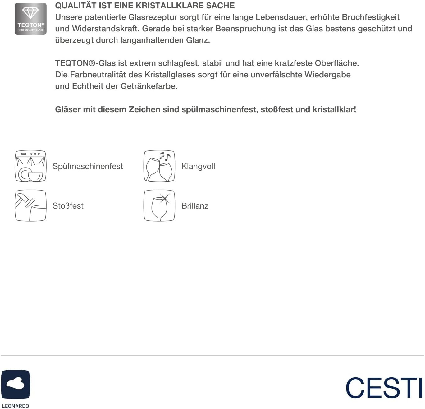 🍷 Trendiges Design: Dieses moderne Sektglas kombiniert einen niedrigeren, trendigen Stiel mit einer eleganten Form. Die klaren Linien und das ansprechende Design steigern das Genusserlebnis 🧽 Spülmaschinenfest: Das Glas ist nicht nur spülmaschinenfest, sondern auch besonders praktisch für den regelmäßigen Einsatz. Es bietet eine unkomplizierte Handhabung und Reinigung und durch den kurzen Stiel passt es in jede Spülmaschine 💎 Teqton Qualität: Unsere hauseigene spezial Glasrezeptur Teqton sorgt für außergewöhnliche Stoßfestigkeit und Langlebigkeit, ideal für die Herausforderungen des Alltags ohne Qualitätsverlust 🥂 Italienischer Charme: Jedes Glas bringt ein Stück italienische Eleganz an Ihren Tisch, was jede Mahlzeit zu einer besonderen macht und den Alltag mit mediterranem Flair bereichert 📦 Lieferumfang & Maße: 6 Sekt-Gläser, Sektglas 240ml CESTI 6er-Set, Maße pro Glas: 24 x 6,7 x 6,7 cm (HxBxT), 140 g, 180 ml Nutzinhalt, 240 ml randvoll | قیمت یورویی : 37.89€