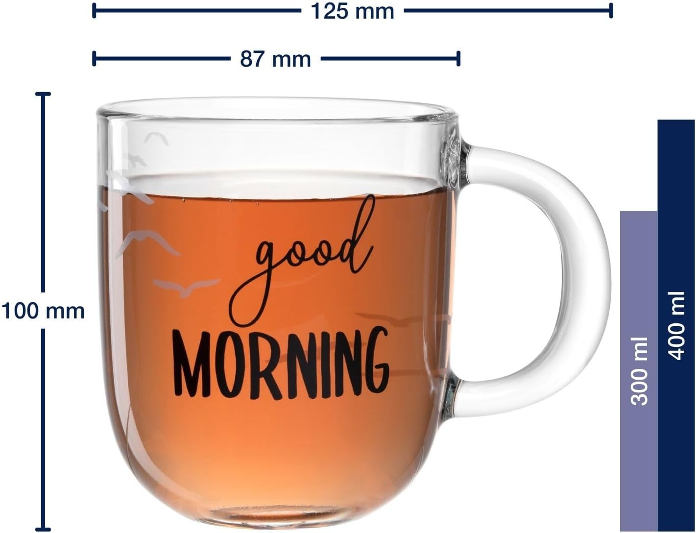 لیوان LEONARDO HOME Ufficio صبح بخیر، مجموعه 4 عددی، ست لیوان قابل شستشو در ماشین ظرفشویی، لیوانهای قهوه با کیفیت بالا و مدرن برای دفتر، ست فنجان چای روزمره از جنس شیشه، 400 میلی لیتر، 047079
