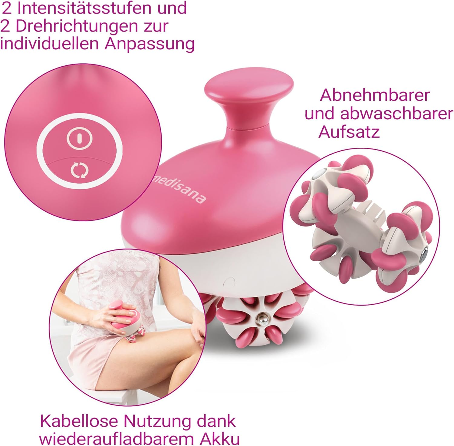 medisana AC 900 Cellulite Massagegerät für straffere Haut, Selbstmassage mit 3 rotierenden Massagerollen und 2 Massageintensitäten, kabellos mit Akku 2. Generation