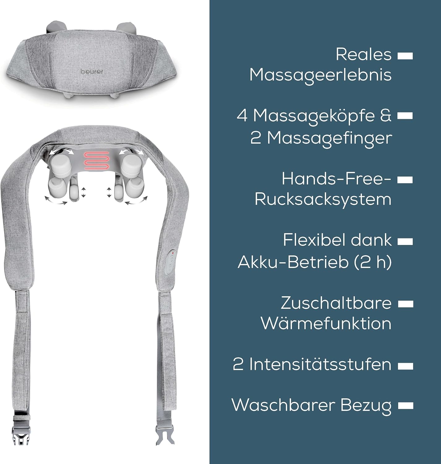 Beurer MG 154 Akku Nacken-Massagegerät mit Wärmefunktion, für Schultern und Nacken, kabelloser Betrieb bis zu 2 Stunden, 6 handsimulierende Massageköpfe und -finger, 2 Intensitätsstufen, waschbar Shiatsu-Massagegerät mit Akku | قیمت یورویی 92.99€