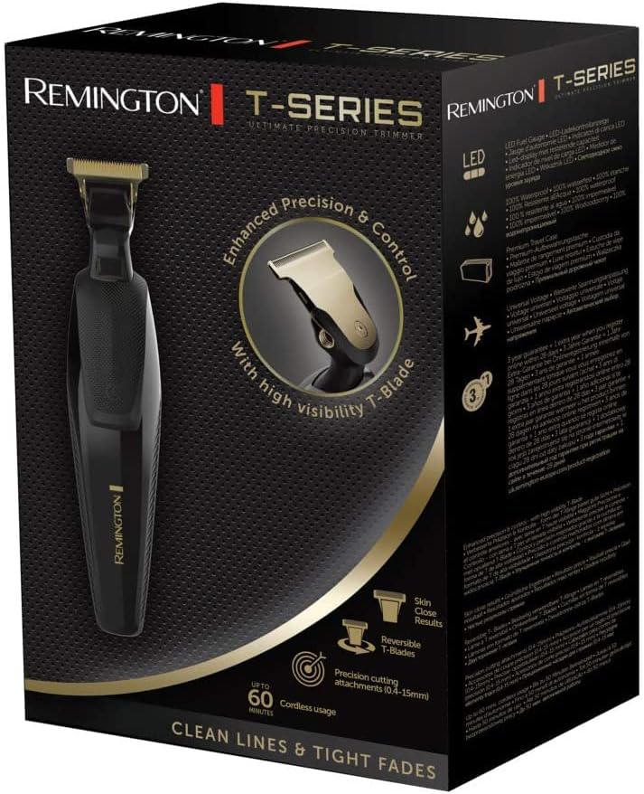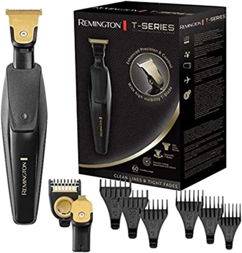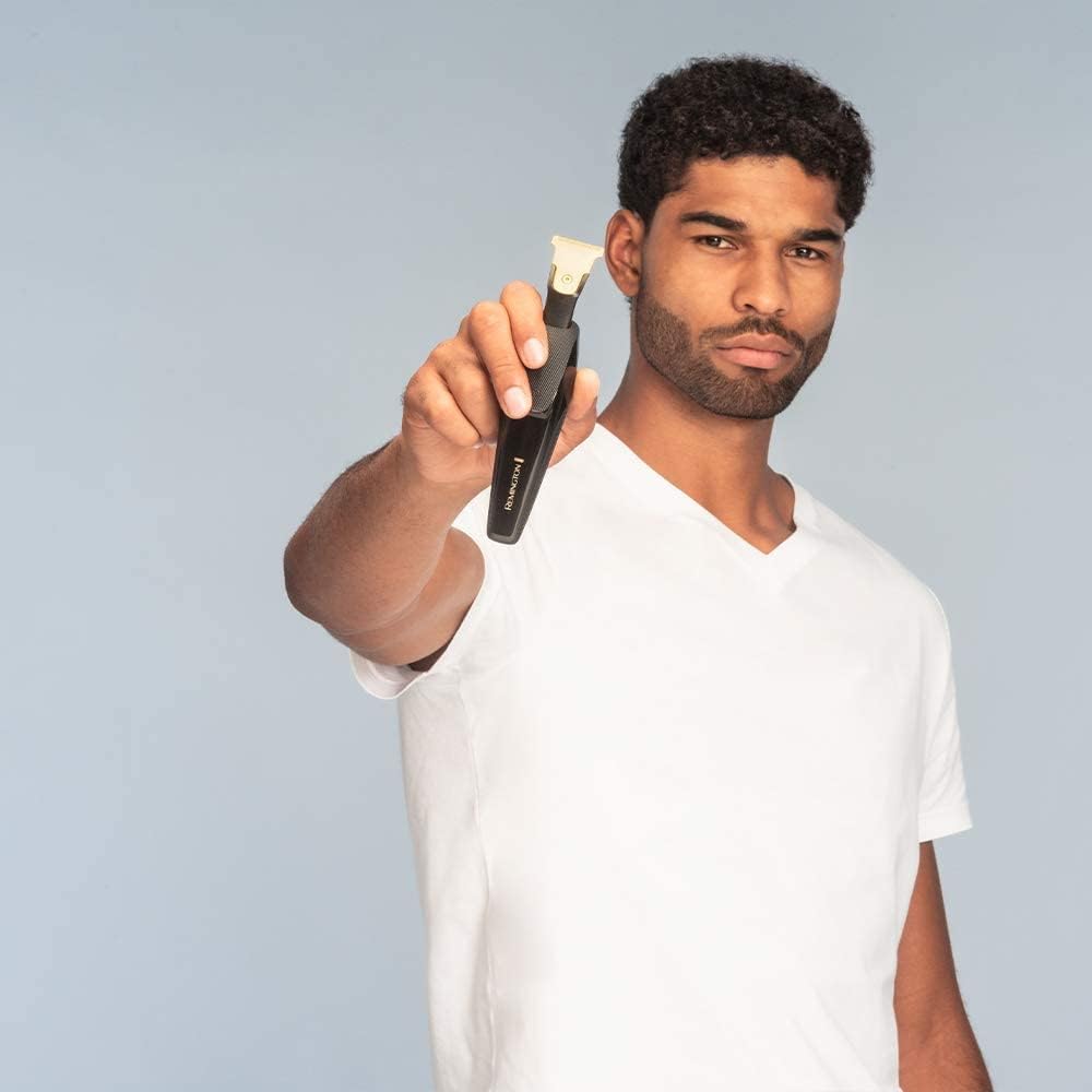 Remington Barttrimmer T-Präzisionstrimmer Lithium mit perfekten Trimmwinkel (2 titanbeschichtete Klingen: 30mm&7mm, 6 Autsteckkämme+Verstellbarer Aufsteckkamm, 100% Wasserdicht) Bartschneider, MB7000 | قیمت یورویی 65.99€