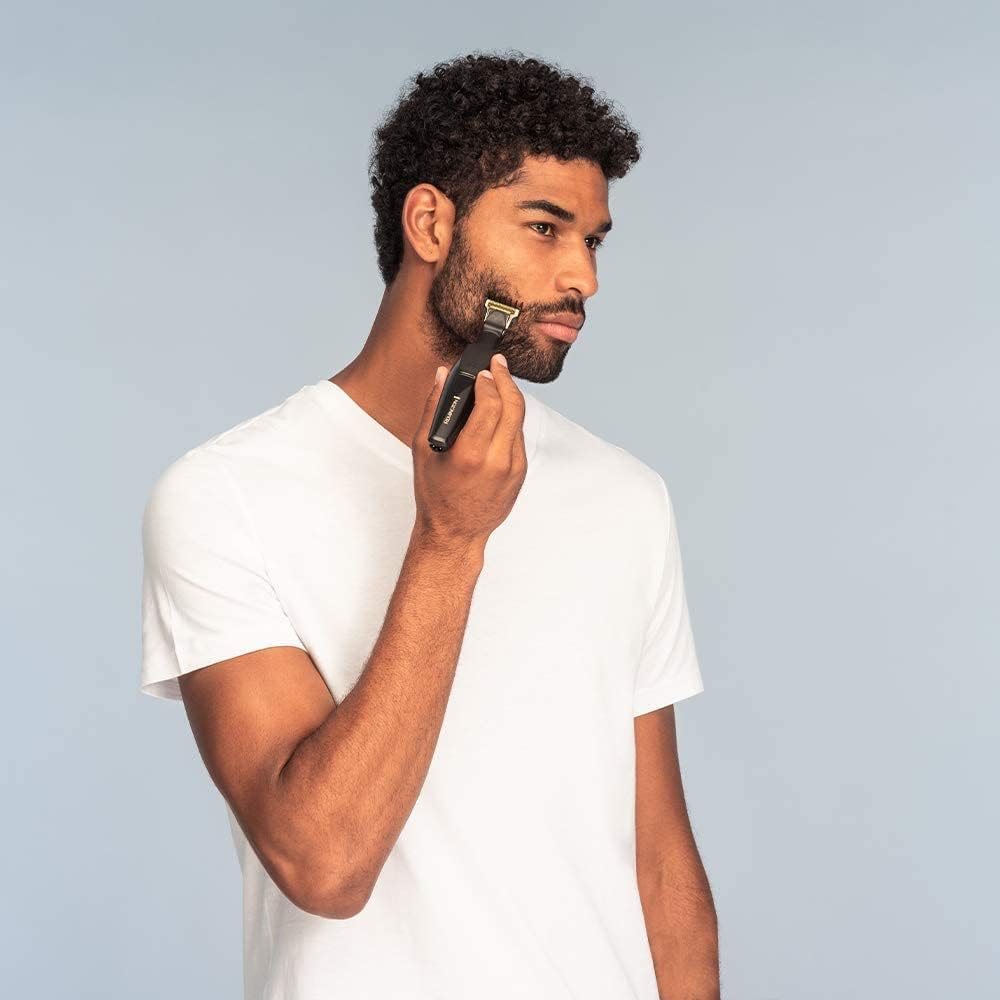 Bart Trimmer für Herren mit titanbeschichteten Klingen für messerscharfe Looks wie frisch vom Barber Wendbarer 30mm t-klingen-aufsatz für den perfekten trimm-winkel und absolute Kontrolle Zusätzliche 7mm Präzisionsklinge für detailliertes schneiden, 100% wasserdicht 30 mm T-Klinge schneidet auf 0, 4mm für glatte Ergebnisse, konturierung und detail-trimmen Verstellbarer Aufsteckkamm (1 - 5 mm), 6 aufteckkämme (1, 5 - 15 mm) Hochleistungsmotor für ein komfortables schneiden aller Haartypen | قیمت یورویی : 65.99€
