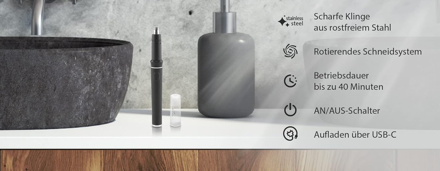 ETA Nasenhaarschneider Jake - Rotatierendes Schneidystem, Betrieb 40min, USB-C Aufladen, Grau | قیمت یورویی 19.99€
