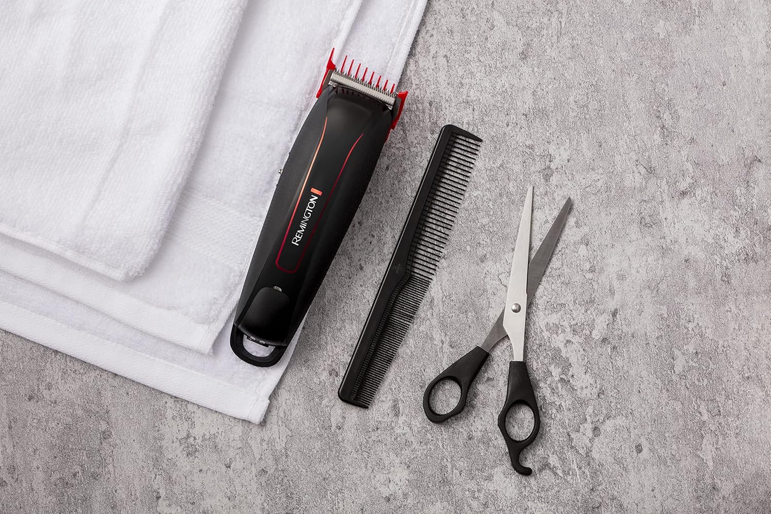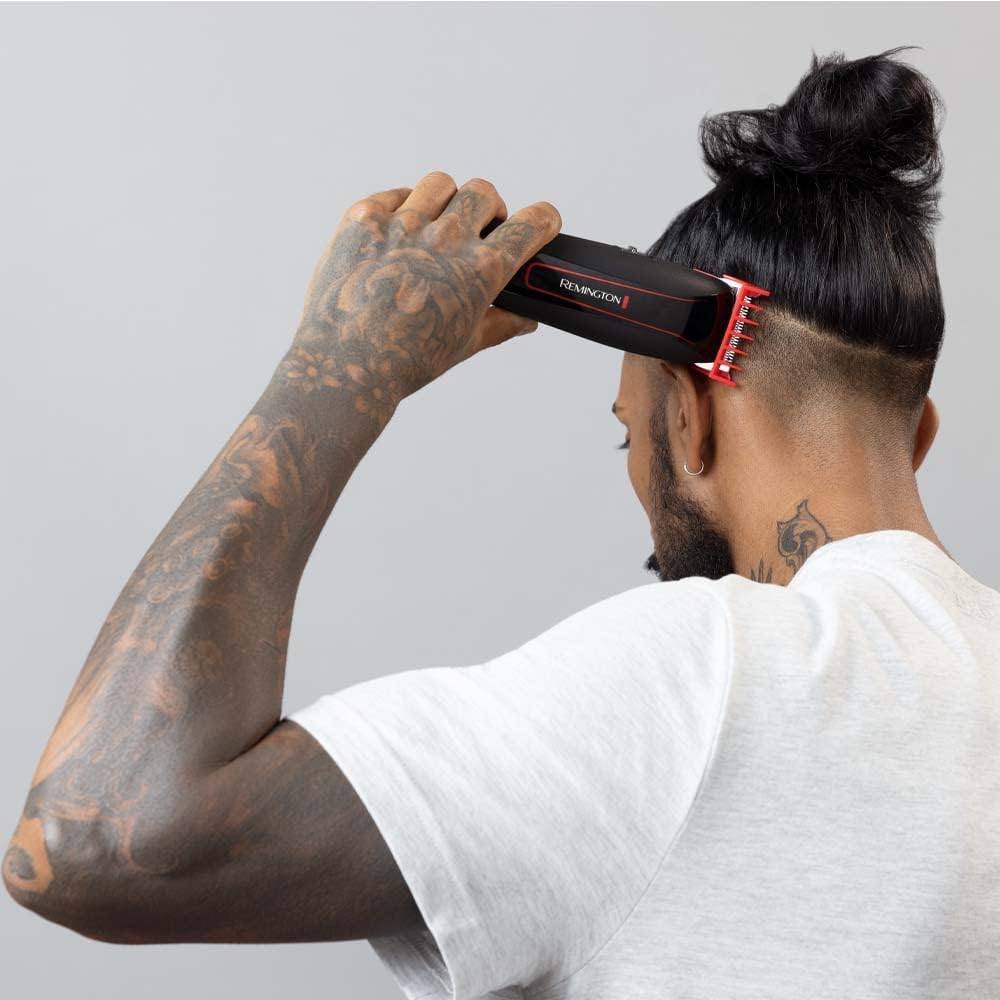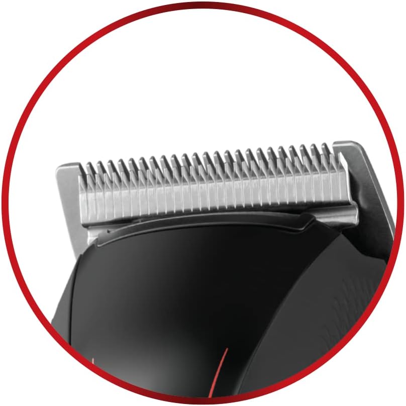 Selbstschärfende Edelstahlklingen, sechsfache Schneidleistung vs Standard Remington Haarschneider Stabiles, ergonomisches Design, 100% wasserdicht mit abnehmbarer Klinge 10 angeschrägte Fade-Kämme bis zu 16mm, 9 normale Kämme (1,5-25mm), Styling-Kamm, Schere, Aufbewahrungstasche Netz-/Akkubetrieb, bis zu 120 Minuten Betriebszeit, 4 Stunden Ladezeit Ladekontrollanzeige, Aufhängeöse | قیمت یورویی : 62.65€