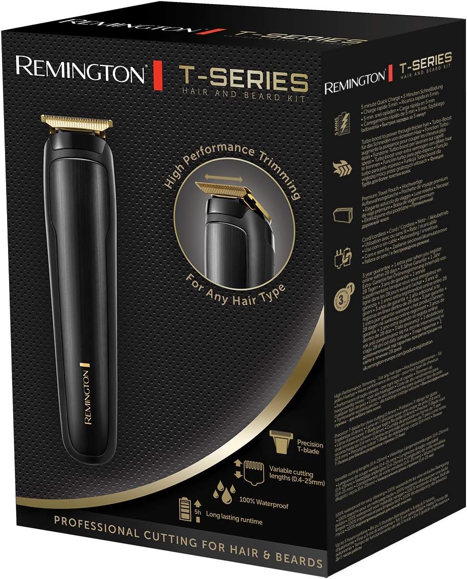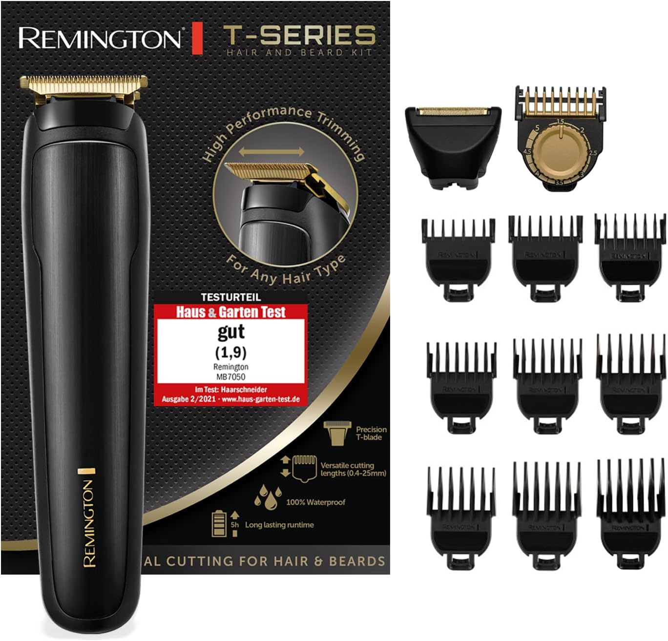 Remington Haarschneidemaschine Profi [Turbo Motor Funktion, Lithium Akku, 4h Laufzeit, Netz- & Akkubetrieb] T-Series 2in1: Barttrimmer & Haarschneider (9 Aufsteckkämme 1,5-25mm & Rasierer+Bart) MB7050 | قیمت یورویی 60.58€