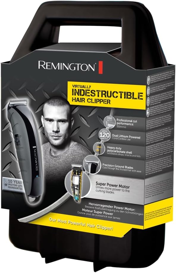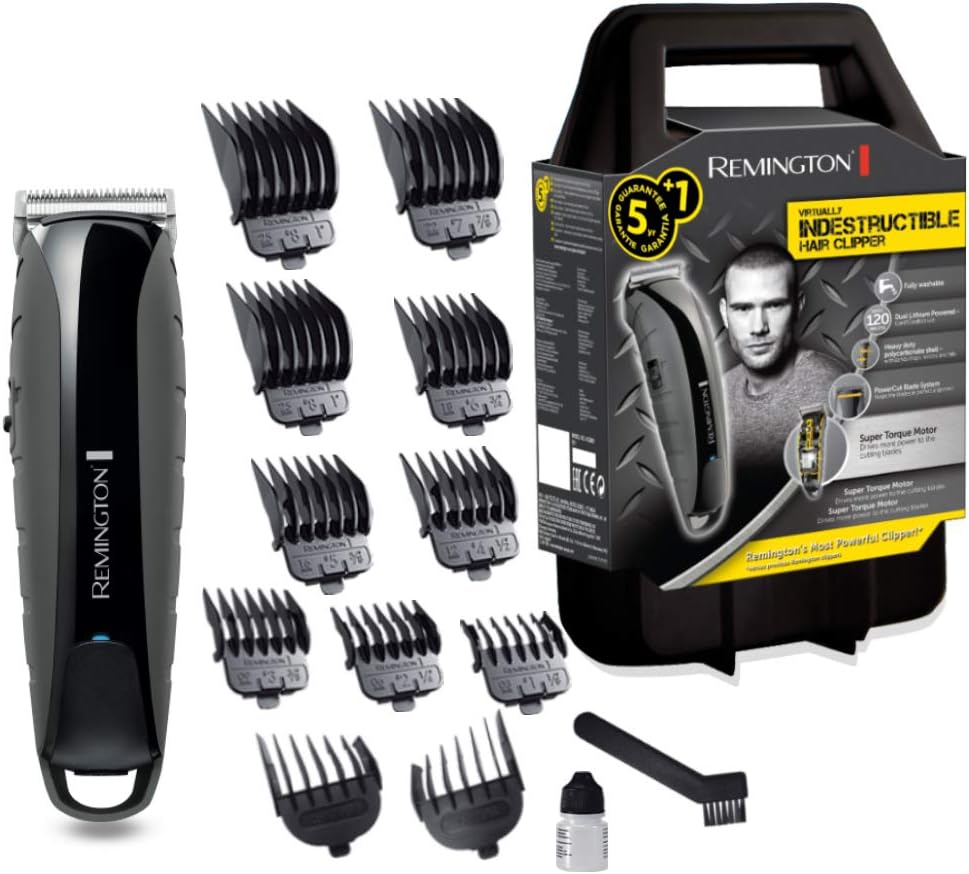Remington Haarschneidemaschine Profi Indestructible (schlagfestes Polycarbonat-Gehäuse, 7,4V Friseur - Motor, 11 Aufsteckkämme, Netz-/Akkubetrieb, Aufbewahrungskoffer, Lithium) Haarschneider HC5880 | قیمت یورویی 38.63€