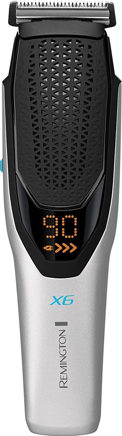 ماشین اصلاح موی رمینگتون حرفهای X6 (موتور حرفهای، 3 شانه اتصال قابل تنظیم 3-35 میلیمتری و شانه اصلاح ریش 1-5 میلیمتری، تیغههای استیل ضد زنگ ژاپنی) ماشین اصلاح موی رمینگتون سری Power X مدل HC6001 X6 + 3-35 میلیمتری + موتور حرفهای + نشانگر زمان باقیمانده