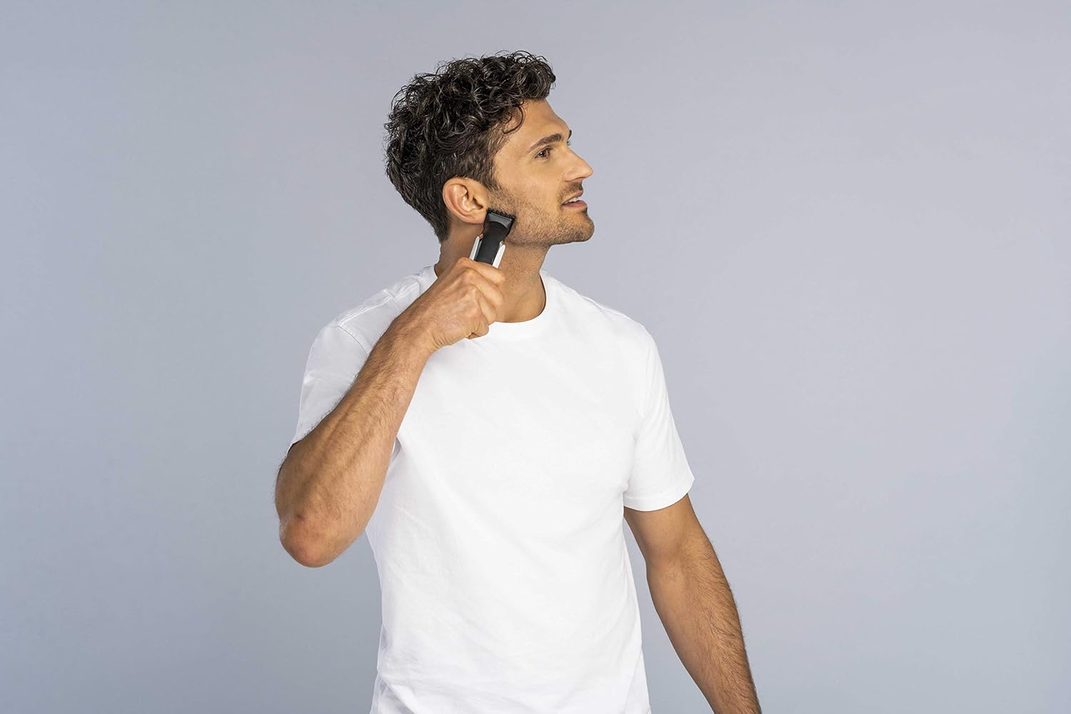 Selbstschärfende, graphitbeschichtete Klingen, für ein einfaches Gleiten und eine bessere Hautverträglichkeit Lithiumbetrieben für bis zu 90 Minuten Betriebszeit, 4 Stunden Ladezeit, zweifache Ladekontrollanzeige 5 Aufsteckköpfe (Breiter Trimmer, Vertikaler Trimmer für Nasen- & Ohrenhaare, Body Hair Trimmer inkl. Aufsteckkamm, Mini-Folienrasieraufsatz, TrimShave-Technologie-Klinge 0,2 mm) 1 verstellbarer Aufsteckkamm (2-20 mm) & 2 Aufsteckkämme (1,5 mm und 3 mm) Für Nass- und Trockenanwendungen, Akkubetrieb, hochwertige Aufbewahrungstasche | قیمت یورویی : 48.46€