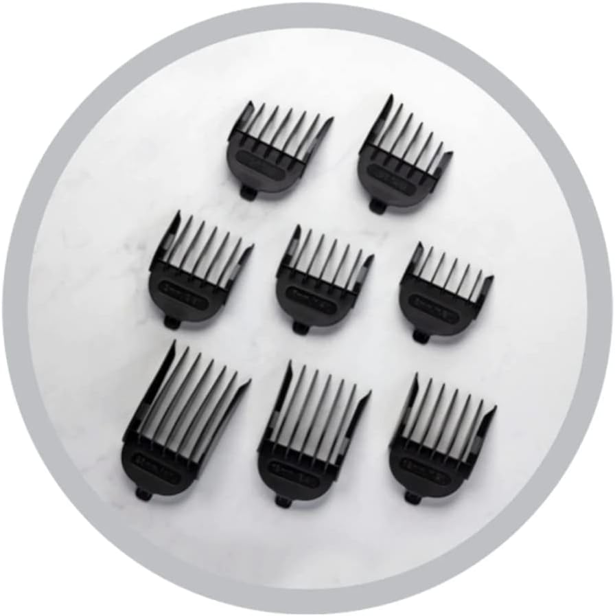 Selbstschärfende Edelstahlklingen & hochwertiges, Modernes Design mit chromapplikationen und soft-touch-details 8 professionelle Aufsteckkämme (3-25 mm), Klingeneinstellhebel für ein exaktes einstellen der Schneidklinge Netz-/Akkubetrieb, für bis zu 40 Minuten Betriebszeit, 2 Stunden Ladezeit, Ladekontrollanzeige Haarspangen zum abtrennen einzelner Haarpartien, Kamm, Nackenbürste und Edelstahlschere inklusive Hochwertige Aufbewahrungstasche | قیمت یورویی : 36.99€