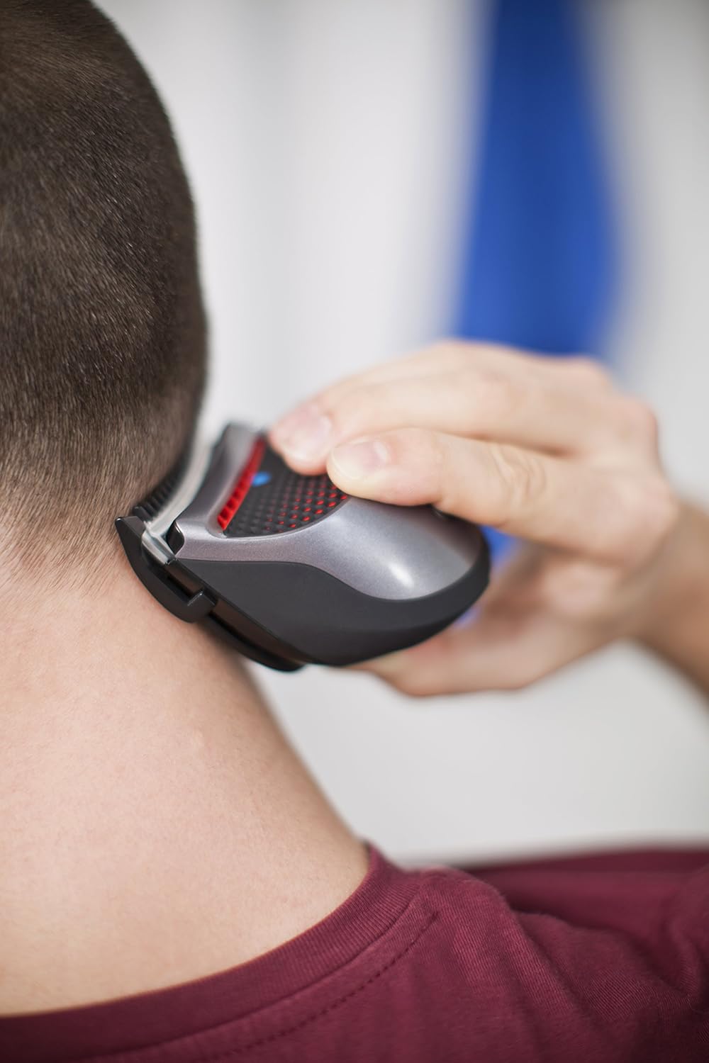 Remington Haarschneidemaschine DIY [selbstschärf. Edelstahl Klingen/Curve-Cut-Technologie für leichtes Selberschneiden/0,5-15mm] Haarschneider (9 Aufsteckkämme,Netz-/Akkubetrieb,Lithium,Tasche) HC4250 DIY Haarschneidemaschine لینک آمازون : https://www.amazon.de/dp/B012F8MS9A?th=1&psc=1 این طراحی امکان برش آسان و مؤثر خط ریش و ناحیه گردن را فراهم میکند. طراحی ارگونومیک برای گرفتن راحت در دست. باتری لیتیومی، زمان کارکرد ۴۰ دقیقه نه شانه ثابت (1.5، 2، 2.5، 3، 4.5، 6، 9، 12، 15 میلیمتری) شارژ سریع برای اطمینان از اینکه ماشین اصلاح شما برای مدت طولانی عملکرد خود را حفظ میکند، تیغهها و دستگاه را مرتباً تمیز کنید. اجازه دهید شانه/تیغه به آرامی موها را کوتاه کند تا برش یکنواختی حاصل شود. آن را با فشار زیاد کوتاه نکنید.