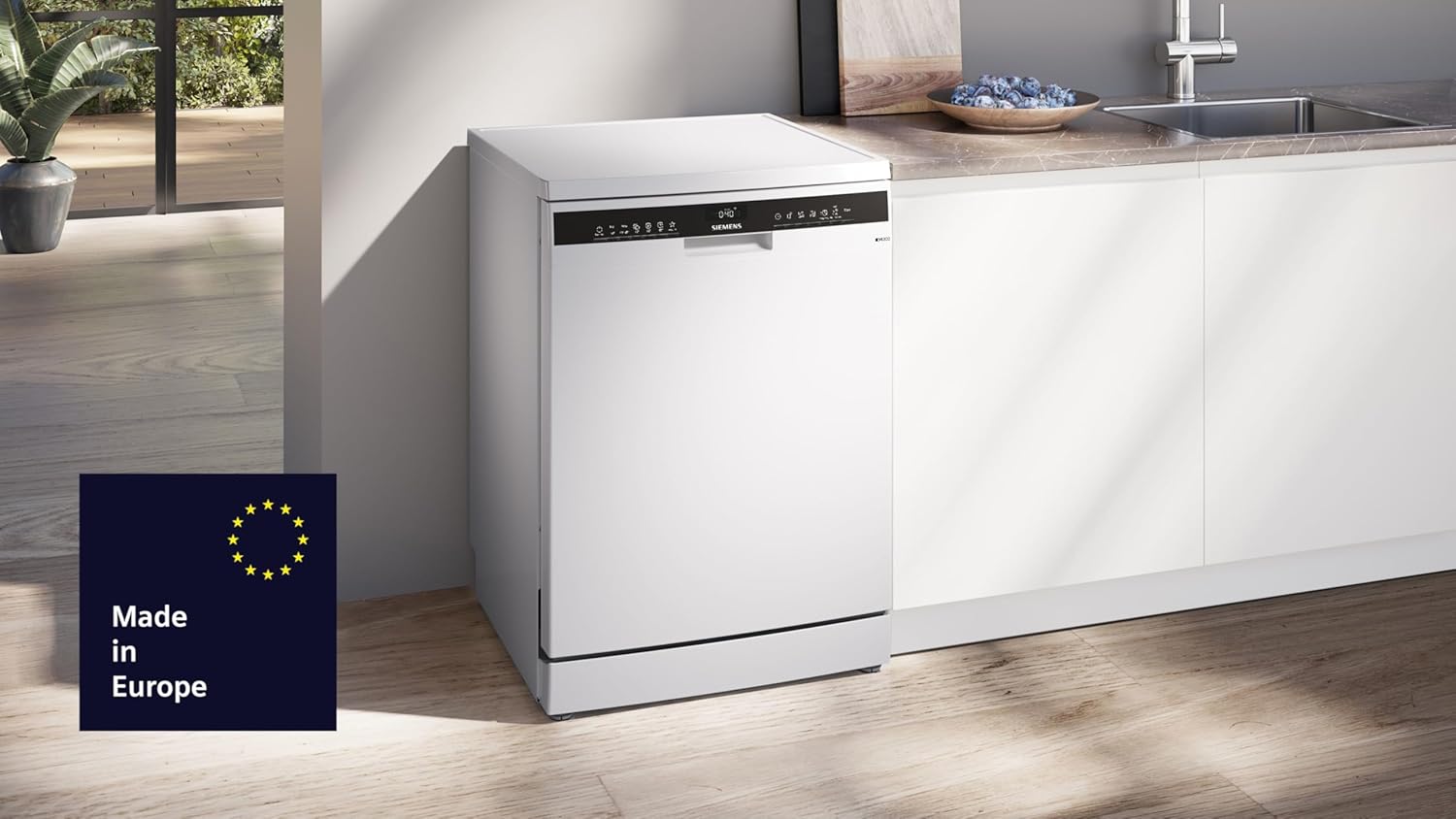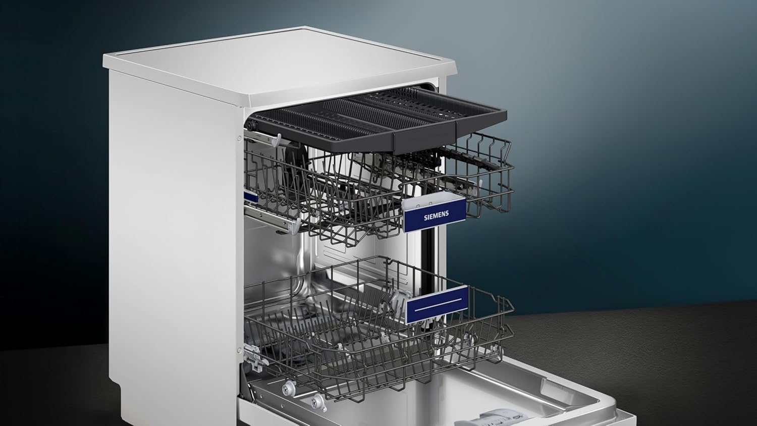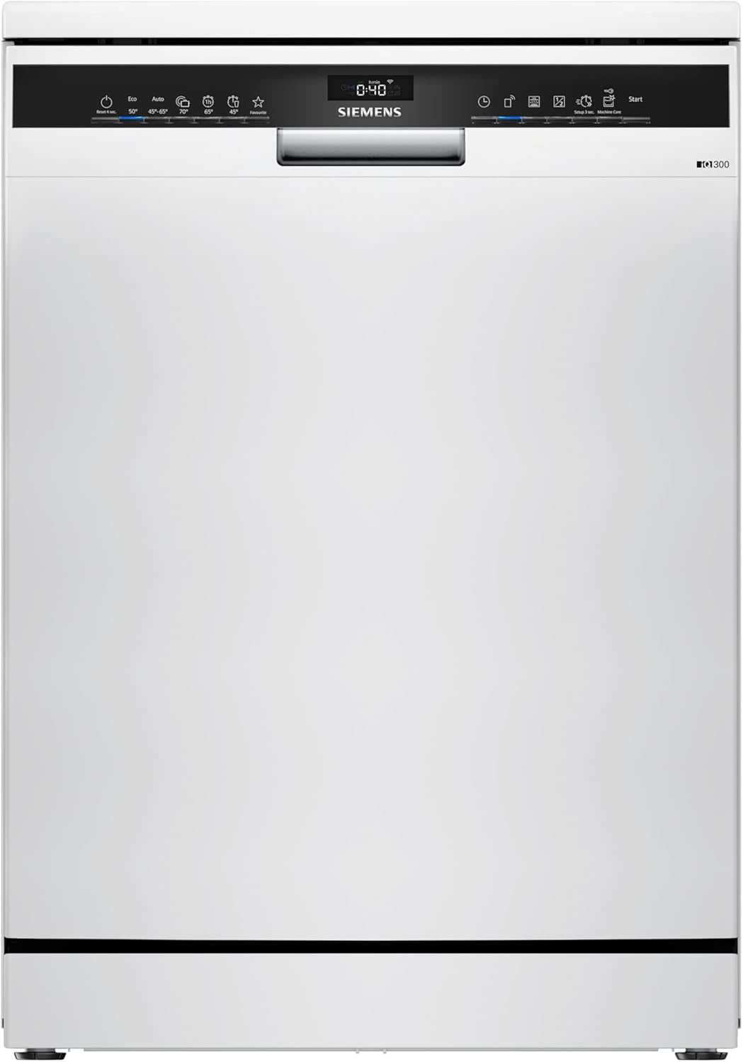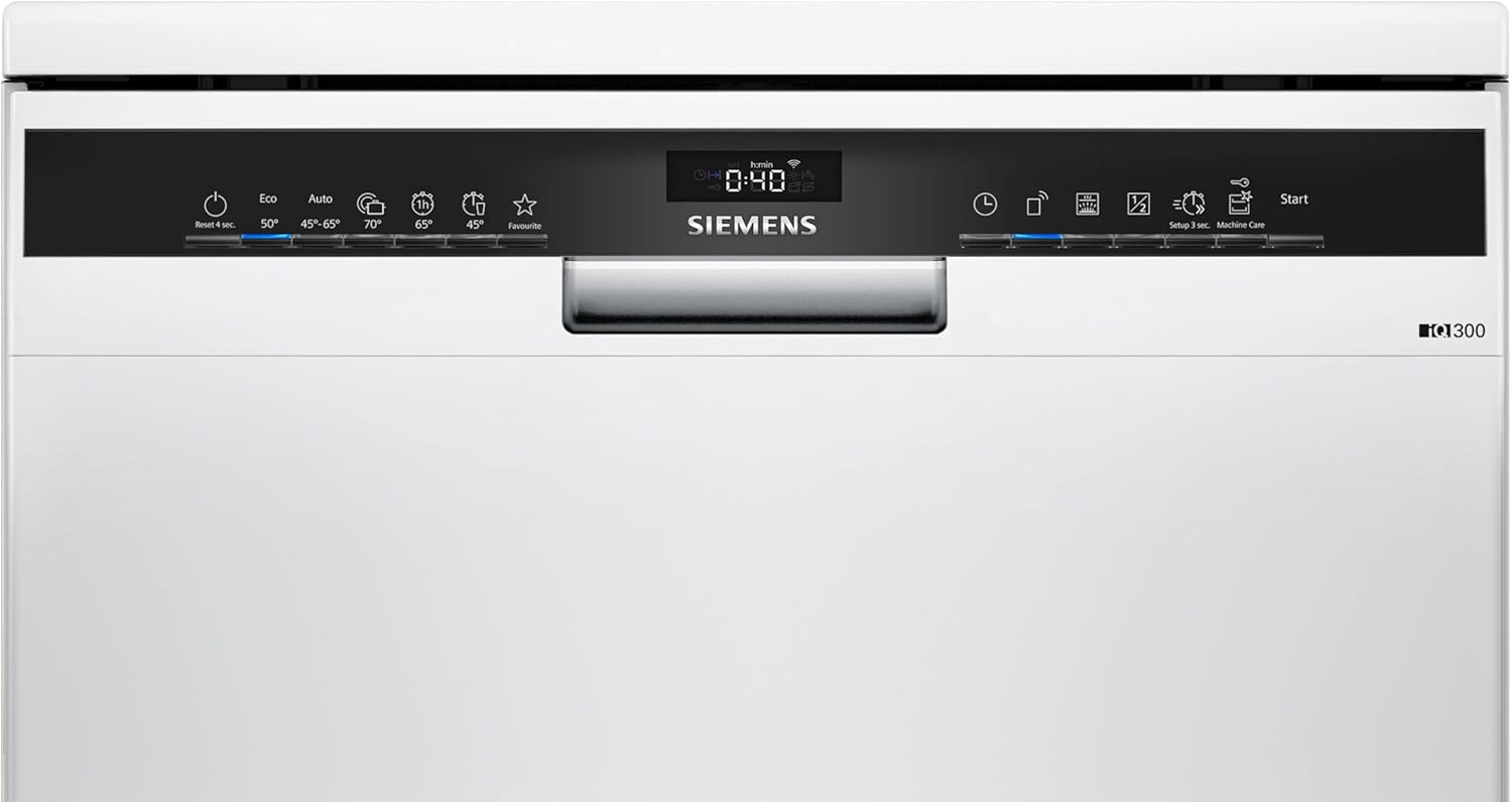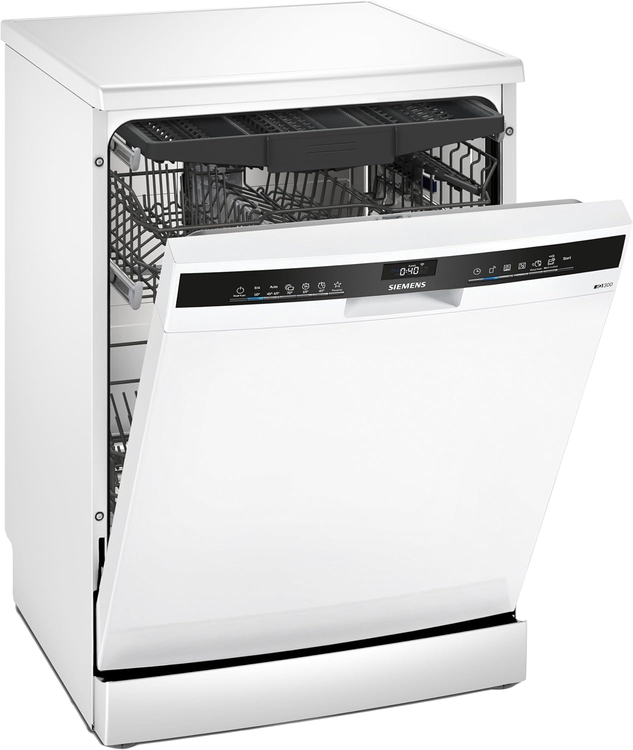 ماشین ظرفشویی ایستاده زیمنس SN23HW02ME iQ300، 60 سانتی‌متر، کشوی کارد و چنگال، دستیار برنامه، سبد بالایی با قابلیت تنظیم ارتفاع، عملکرد بهداشتی تایید شده، برنامه مراقبت از ماشین، aquaStop، سفید