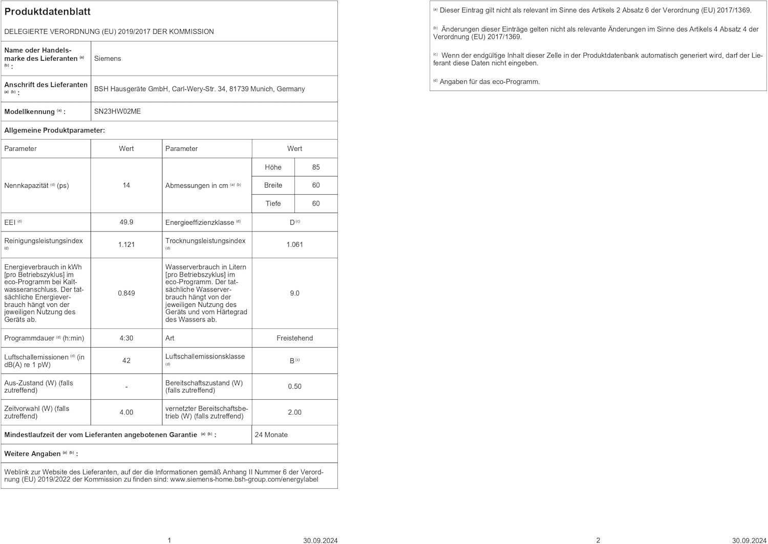 Siemens SN23HW02ME iQ300, Freistehender Geschirrspüler 60 cm, Besteckschublade, Programm-Assistent, Oberkorb höhenverstellbar, Bestätigte Hygieneleistung, Maschinenpflege-Programm, aquaStop, Weiß | قیمت یورویی 536€