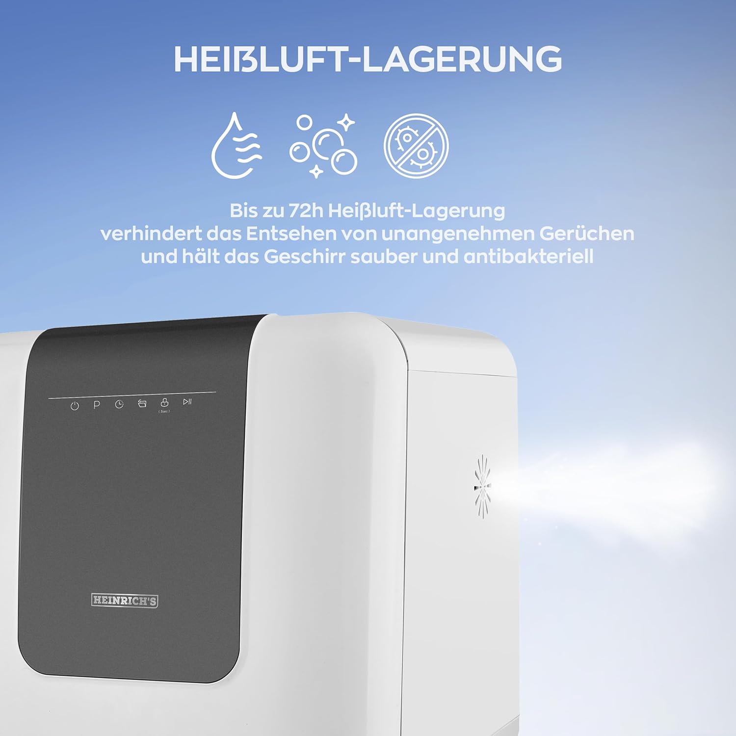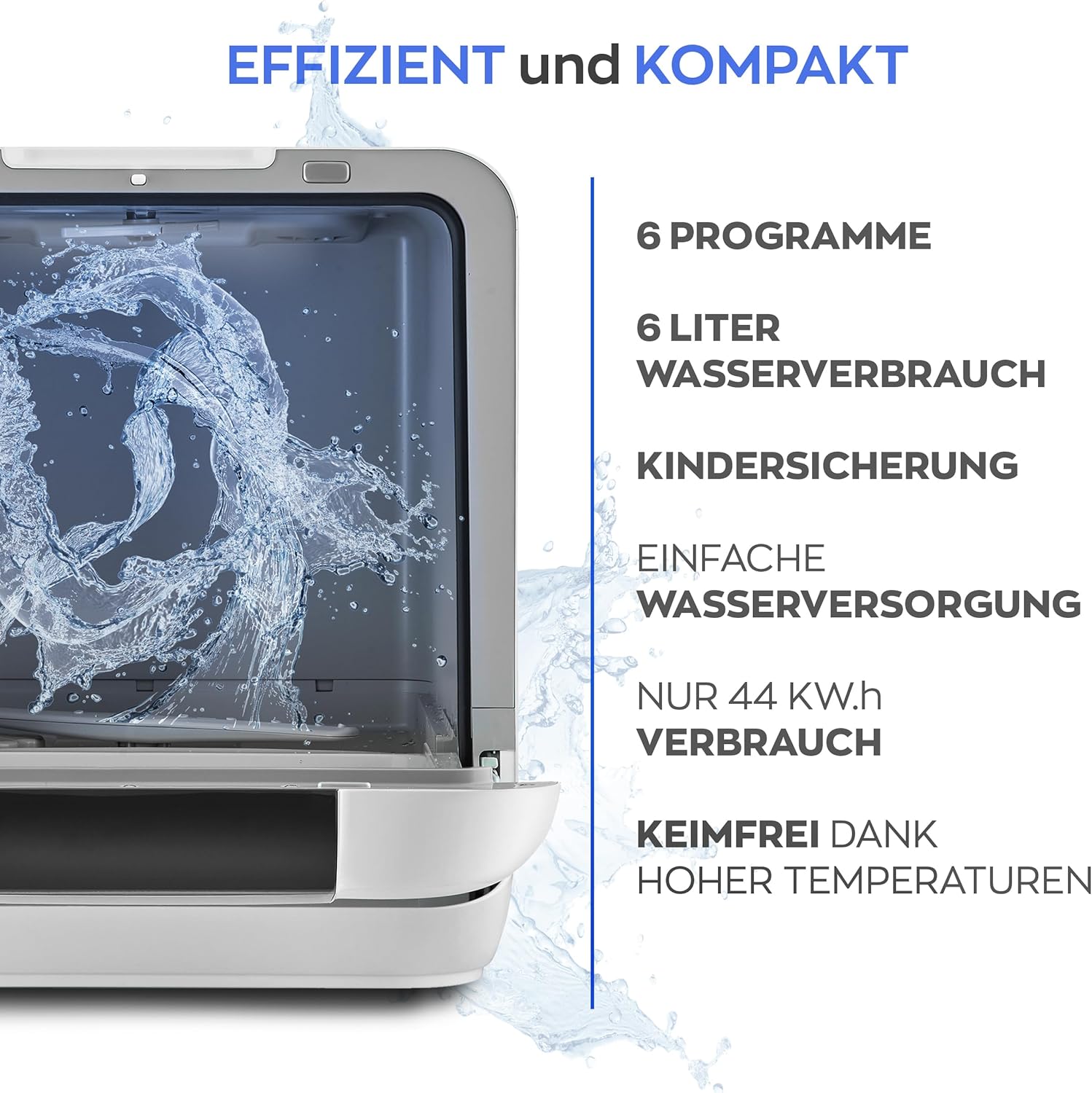 HEINRICH´S tragbarer Mini Geschirrspüler, Spülmaschine, Tischgeschirrspüler mit 6L Wassertank, mit oder ohne Wasseranschluss nutzbar, klein+ freistehend für Büro, Camping/Wohnmobil, 6 Programme