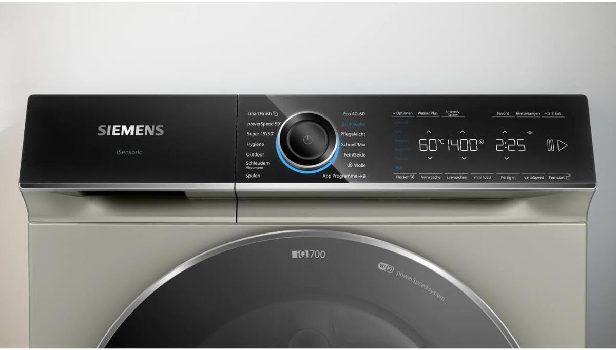 Siemens WG44B20X40 Waschmaschine iQ700, Frontlader mit 9kg Fassungsvermögen, 1400 UpM, speedPack XL, Home Connect, Anti Flecken System, LED-Display, Silber-inox, 60cm IQ700 - silber 9kg | قیمت یورویی 999€