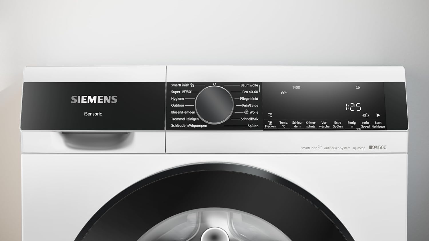 Spare Energie und Wasser mit WaterPerfect Plus: Diese Siemens Waschmaschine nutzt intelligente Sensoren, um den Wasserverbrauch an die Wäschemenge anzupassen und erreicht so die beste Energieeffizienzklasse A. Genieße saubere Wäsche bei geringerem Energieverbrauch und schone gleichzeitig die Umwel Fleckenautomatik für perfekte Reinigung: Hast du schwierige Flecken? Kein Problem! Die Fleckenautomatik-Technologie ermöglicht es, selbst hartnäckige Flecken effektiv zu entfernen, ohne Vorbehandlung. Einfach das gewünschte Programm auswählen, und die Waschmaschine erledigt den Rest Weniger Bügelaufwand dank SmartFinish: Die Dampffunktion SmartFinish der Siemens Waschmaschine reduziert deinen Bügelaufwand, indem sie Knitterfalten in der Wäsche um bis zu 50% vermindert. Spare Zeit und Mühe bei der Wäschepflege Beschleunige deine Wäsche mit VarioSpeed: Wenn es mal schneller gehen muss, bietet dir die VarioSpeed-Funktion die Möglichkeit, die Waschdauer um bis zu 65% zu verkürzen, ohne dass die Waschleistung beeinträchtigt wird. Ideal für den schnelllebigen Alltag Großes LED-Display und einfache Bedienung: Die Siemens Waschmaschine verfügt über ein großes LED-Display, das den Programmablauf übersichtlich anzeigt und die Bedienung durch TouchControl-Tasten vereinfacht | قیمت یورویی : 646.54€