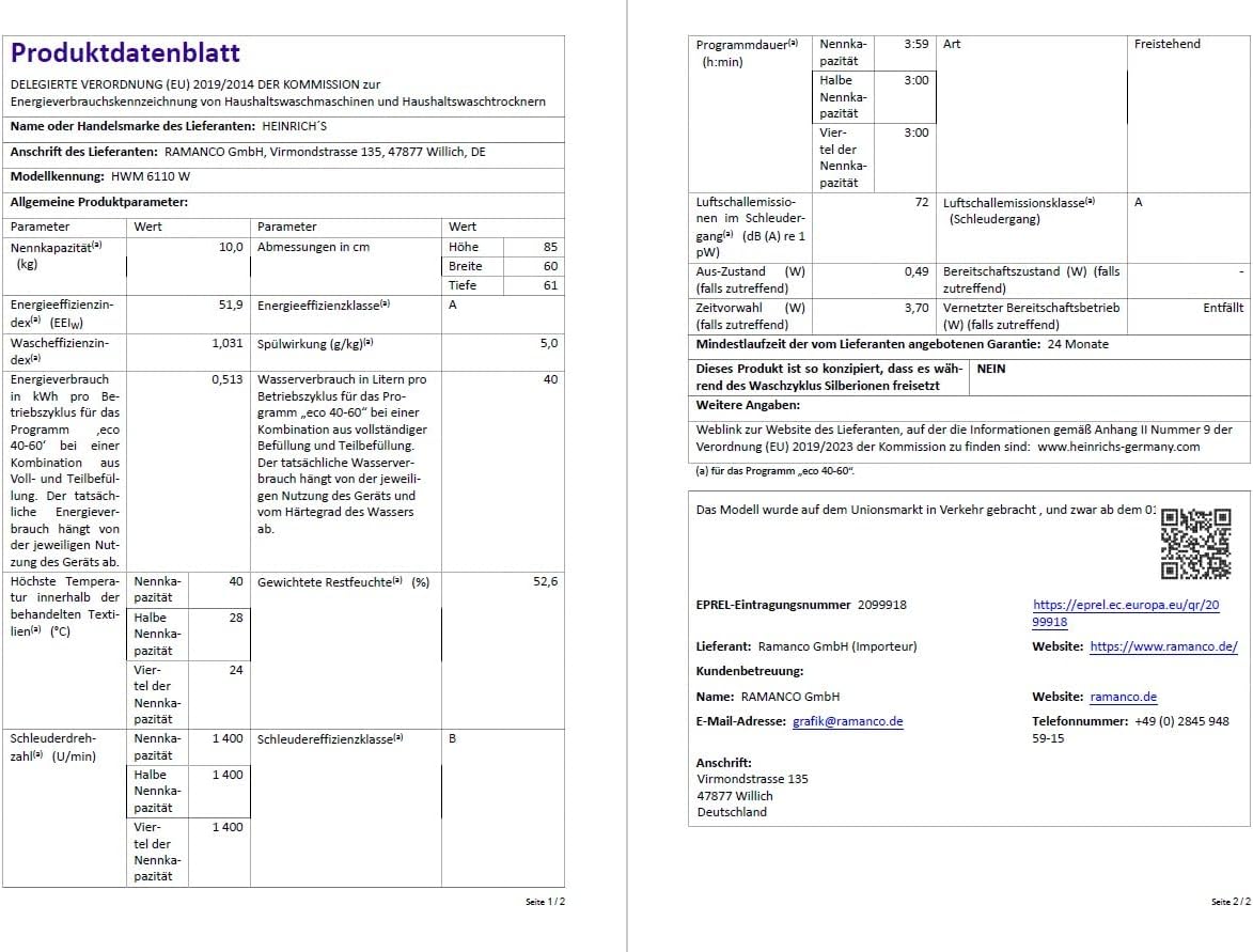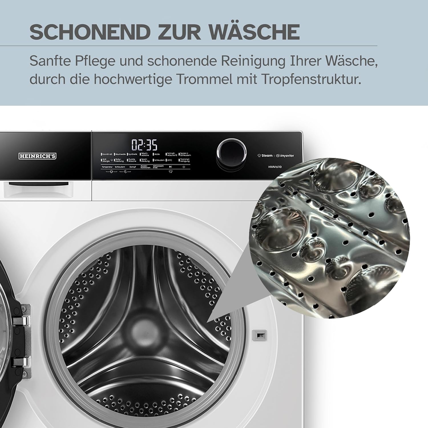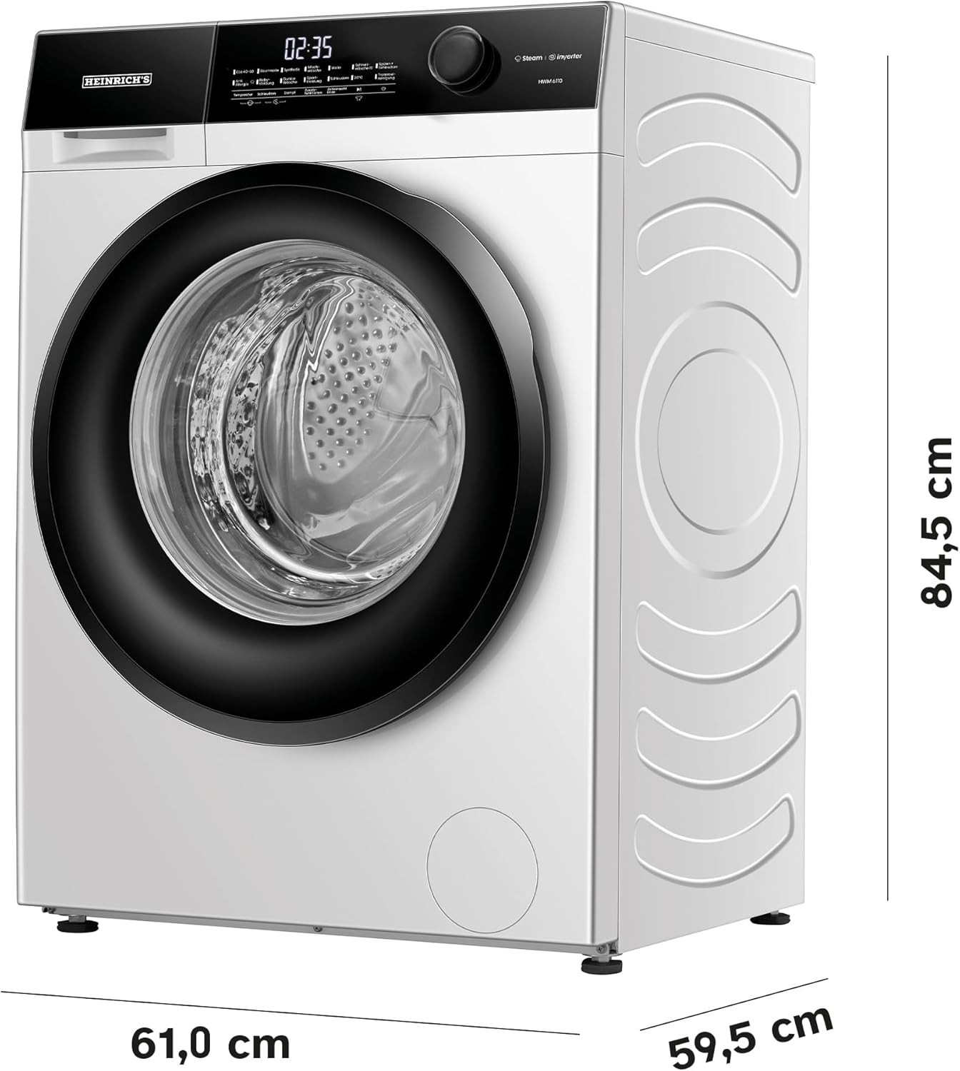 HEINRICHS Waschmaschine, Steam-Funktion, 10kg Mega Kapazität, 15 Programme, 1400 U/min., Aqua-Stop, LED-Display, Endzeitvorwahl, mit Kindersicherung, langlebiger und leiser Inverter Motor,Weiß 10 KG Weiss | قیمت یورویی 459.99€