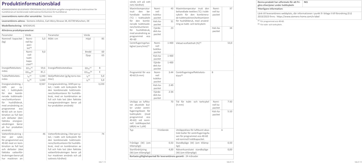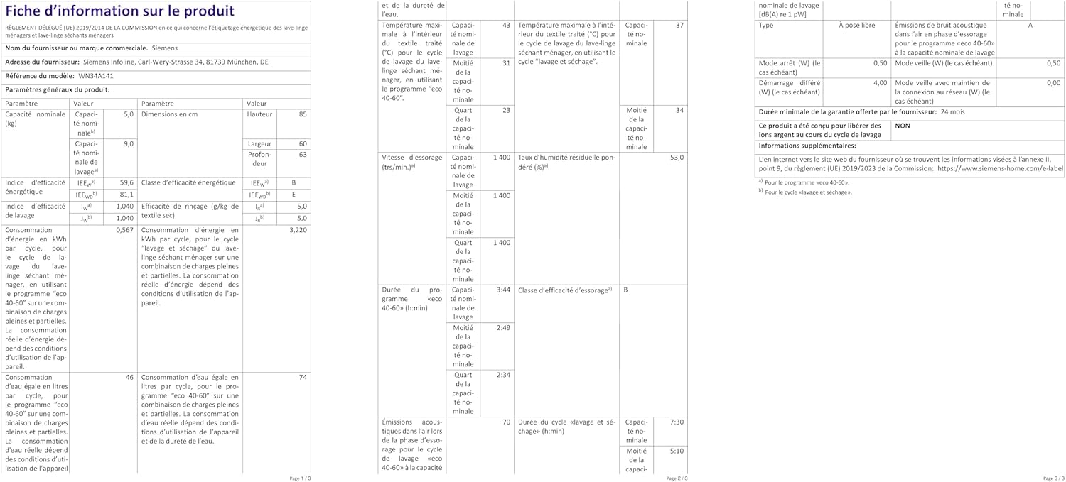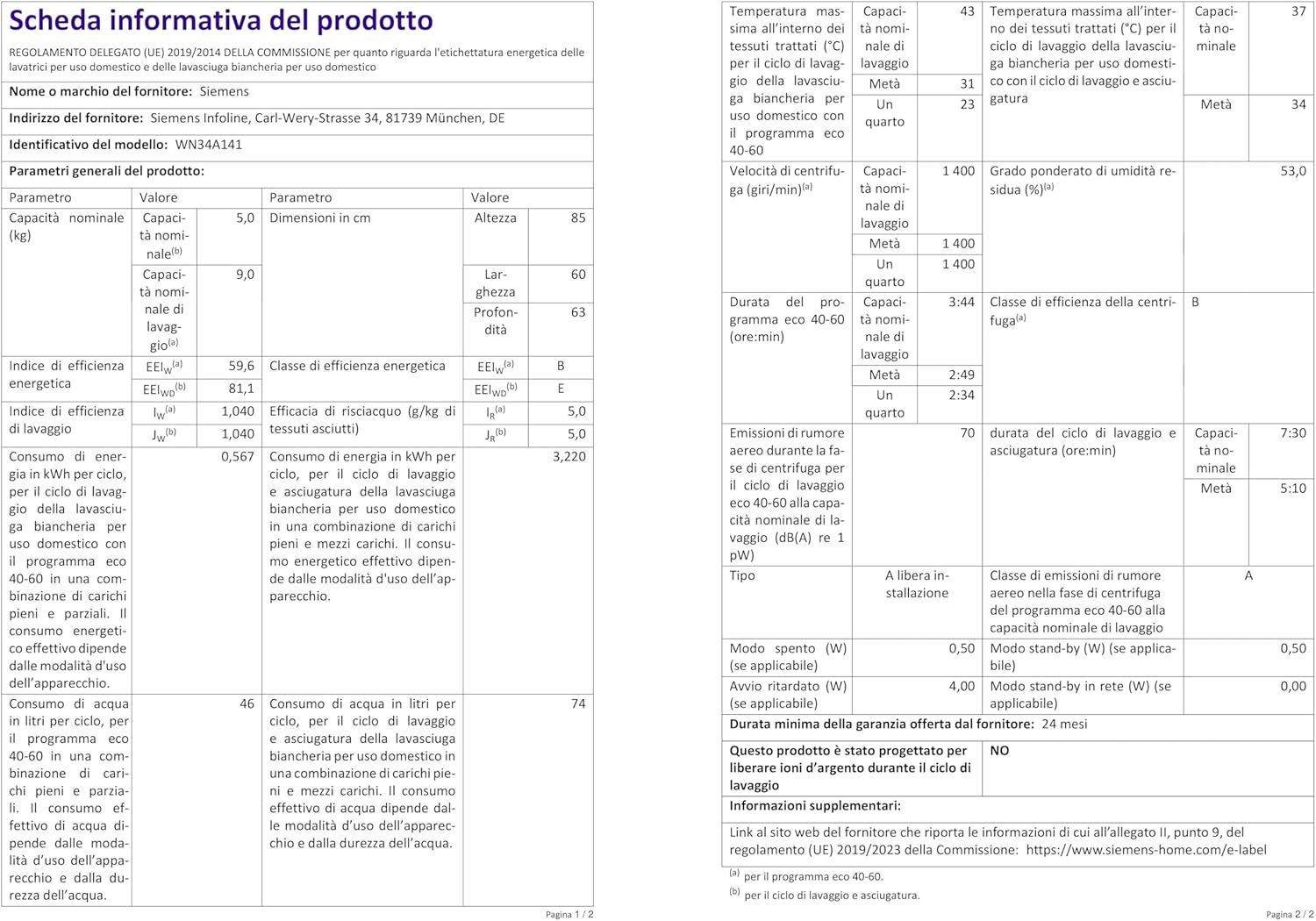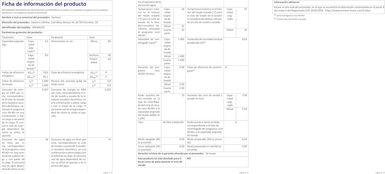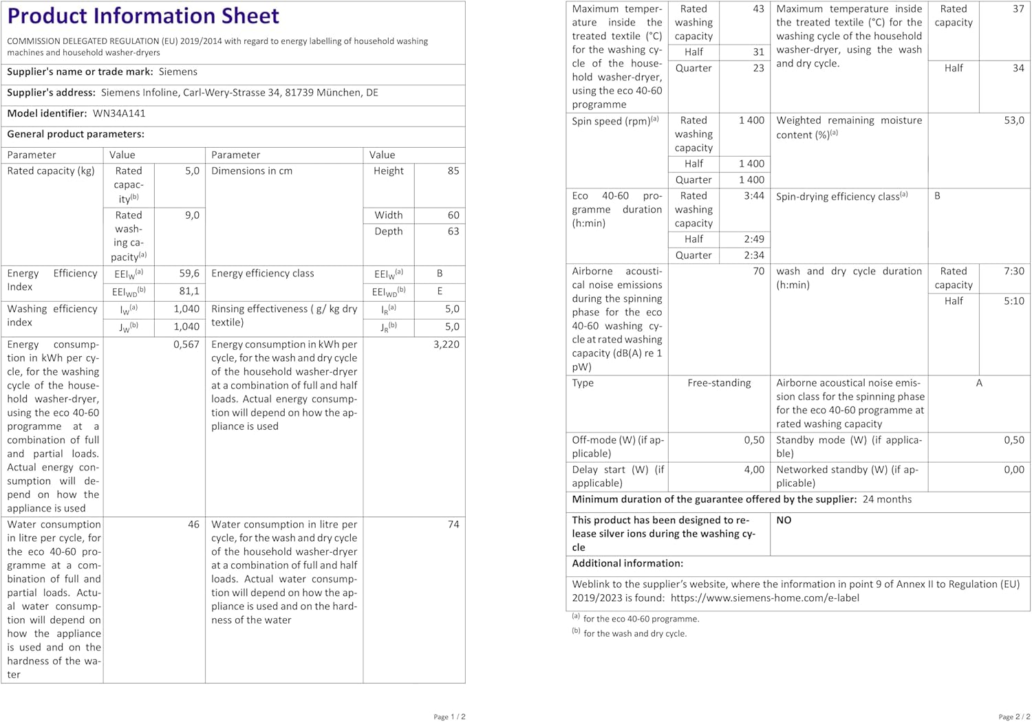 Siemens WN34A141 Waschtrockner iQ300, Frontlader mit 9/5kg Fassungsvermögen, 1400 UpM, autoDry, speedPack L, iQdrive, AquaStop, Weiß, 60cm 9/5 kg energy class "B/E" | قیمت یورویی 683.41€
