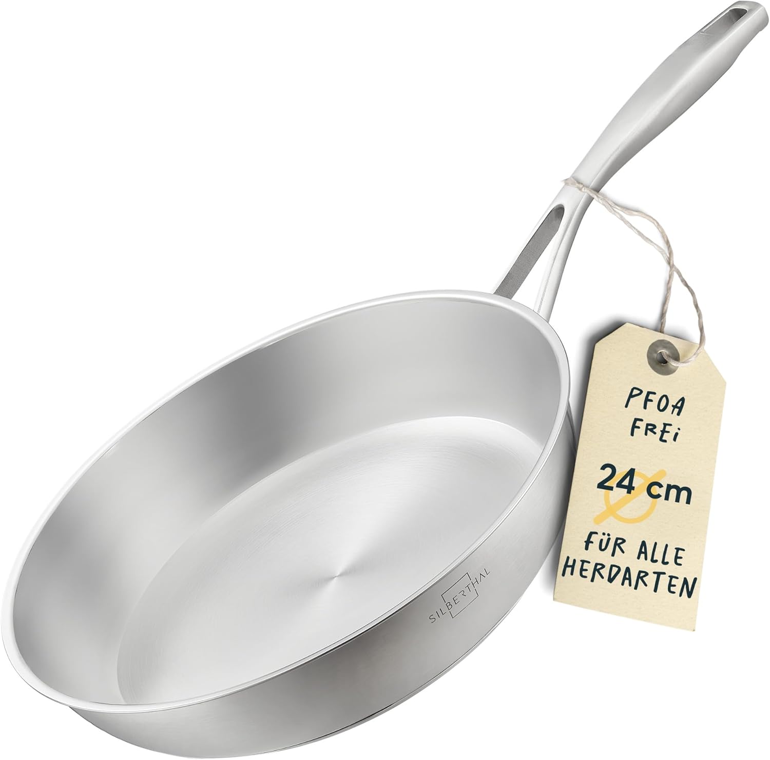 SILBERTHAL Edelstahl Pfanne Unbeschichtet - Induktion - Profi Bratpfanne 24cm - Röstaromen - Ofenfest Unbeschichtet 24 cm | قیمت یورویی 64.95€