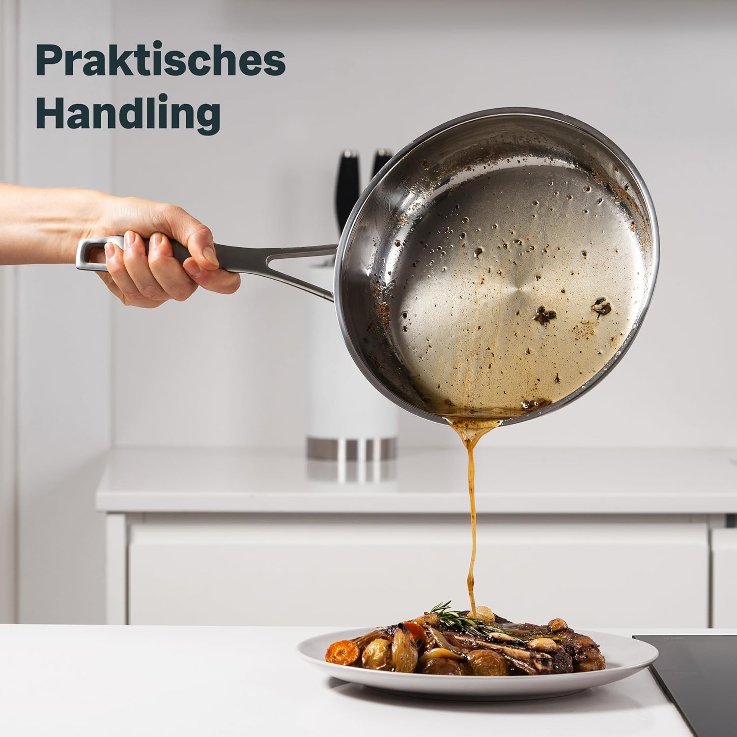 Perfekte Röstaromen – 3‑Lagen‑Boden liefert schnelle & gleichmäßige Hitze, ideal für scharfes Anbraten von Fleisch & Bratkartoffeln. Hitzefest bis 400°C – robust im Ofen, auf Gas, Elektro & Induktion. Sorgt für knackige Krusten & intensiven Genuss. Kühler Griff & Schüttrand – ergonomisch & sicher in der Hand, tropffrei gießen für saubere Küchenmomente. Spülmaschinenfest & pflegeleicht – scheuerfreundlich & ohne Plastikverpackung – nachhaltig, praktisch, stressfrei. Edelstahl 18/10, BPA‑ & PFOA frei – wertig, geschmacksneutral, bewusst gefertigt. | قیمت یورویی : 64.95€