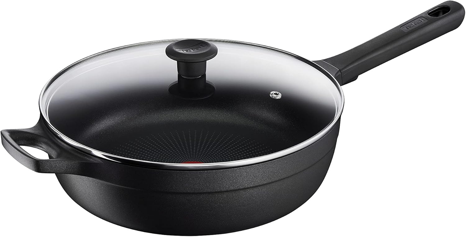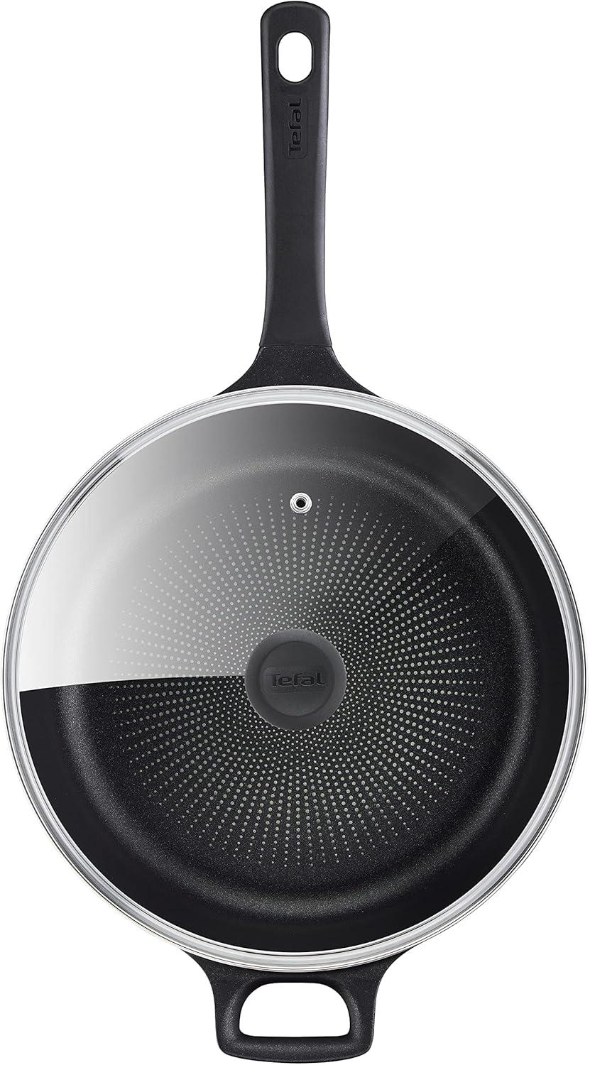 Tefal G61237 Trattoria Pro Schmorpfanne 28 cm mit Deckel | Aluguss | unbedenkliche Antihaftversiegelung | Thermo-Signal Temperaturanzeiger | für alle Herdarten geeignet | induktionsgeeignet | Schwarz | قیمت یورویی 103.89€