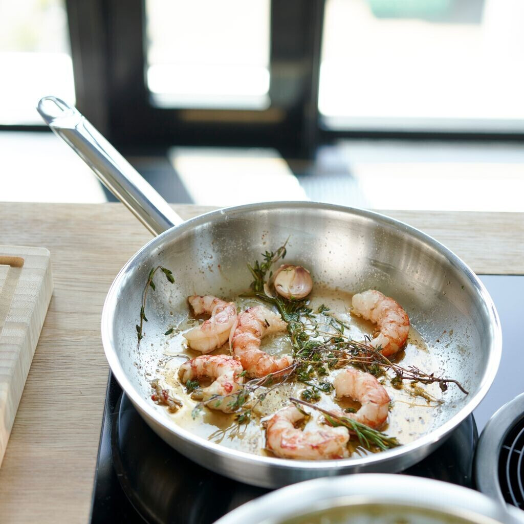 ماهیتابه زولینگ آلمان ZWILLING Pro Bratpfanne 18/10 Edelstahl، در اندازه 20 سانتیمتر، از استیل ضد زنگ 18/10 ساخته شده که دوام و مقاومت بالایی در برابر خوردگی دارد. این ماهیتابه با توزیع یکنواخت حرارت، امکان پخت بهتر غذا را فراهم میکند و بدنه استیل، تمیزکردن آن را بسیار آسان میسازد. طراحی ارگونومیک دسته باعث میشود حرارت کمتری به دست منتقل شود و کنترل بیشتری هنگام آشپزی داشته باشید. علاوه بر این، استیل 18/10 باعث میشود طعم اصلی مواد غذایی حفظ شود و هیچگونه واکنش شیمیایی با مواد غذایی نداشته باشد. این محصول برای اجاق گاز، برقی و القایی مناسب بوده و قابلیت شستشو در ماشین ظرفشویی را نیز دارد.