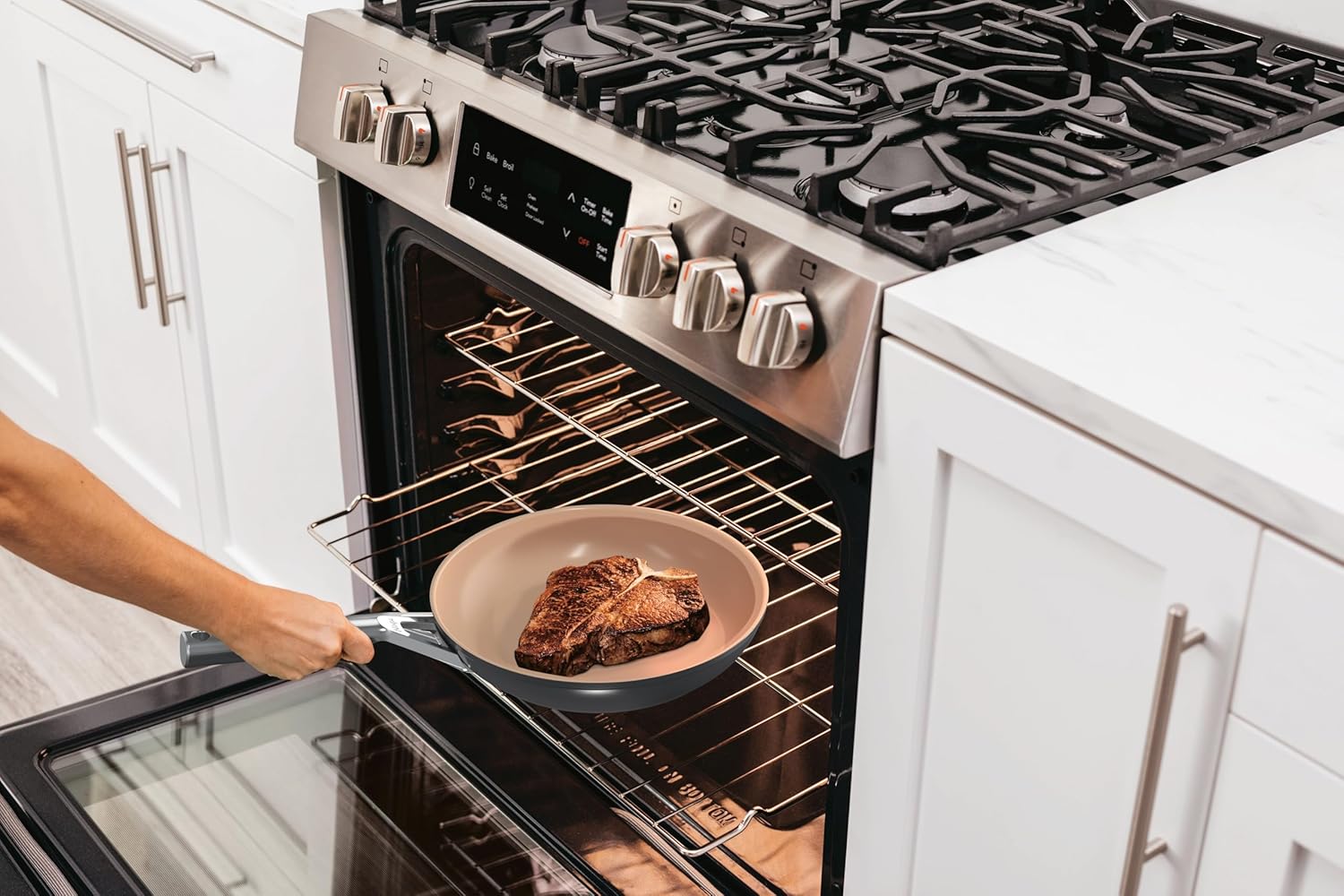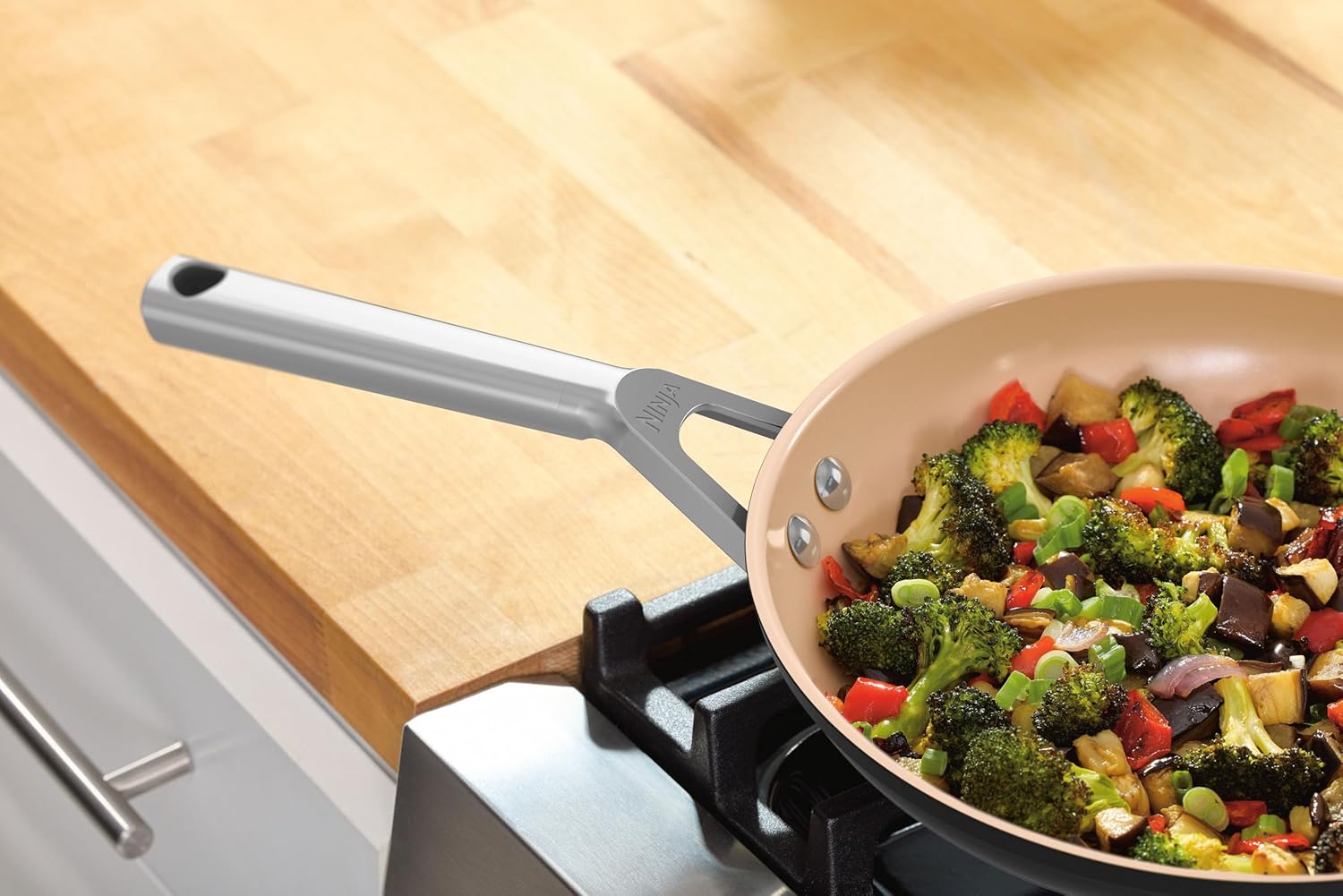 Ninja CW90030UK Keramik-Bratpfanne, antihaftbeschichtet (ohne PFAs, PFOA, Blei oder Cadmium), Induktionskompatibel, Edelstahlgriff, ofenfest bis 285 °C, Terrakotta und Grau 30 cm Bratpfanne | قیمت یورویی 74.17€