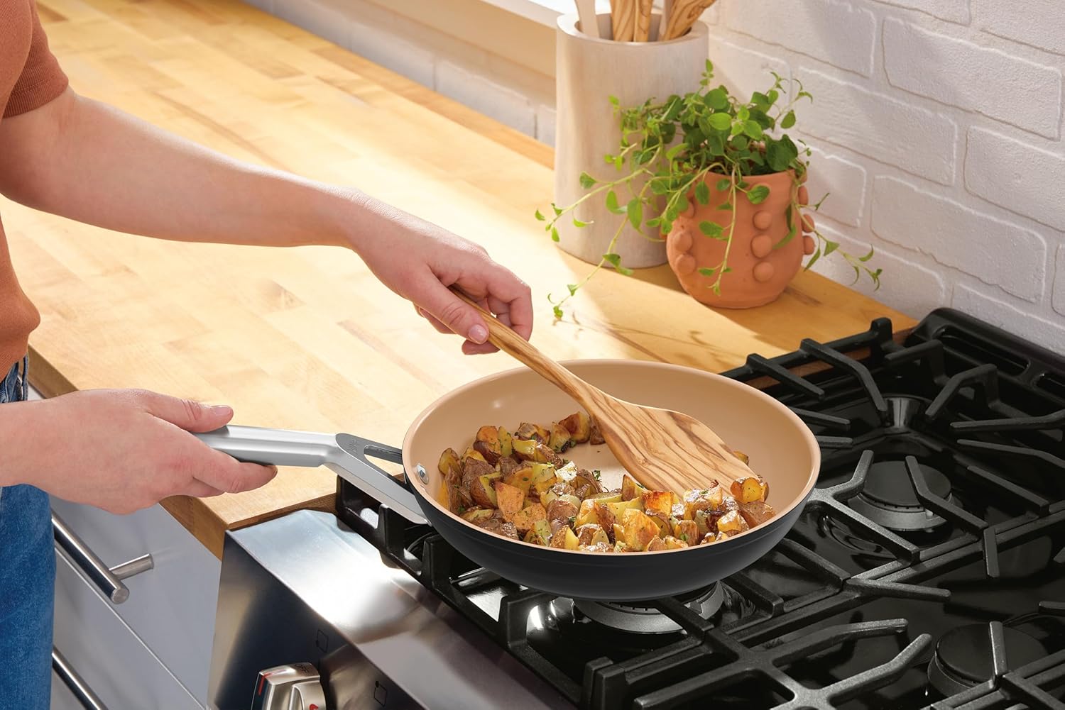 Ninja CW90030UK Keramik-Bratpfanne, antihaftbeschichtet (ohne PFAs, PFOA, Blei oder Cadmium), Induktionskompatibel, Edelstahlgriff, ofenfest bis 285 °C, Terrakotta und Grau 30 cm Bratpfanne لینک آمازون : https://www.amazon.de/dp/B0CP4FZPX8?th=1&psc=1 ۵ سال گارانتی* در صورت استفاده طبق دستورالعمل، با حداقل روغن یا بدون روغن آشپزی کنید، پوشش سرامیکی بادوام، مناسب برای همه اجاق گازها، قابل استفاده در فر تا دمای ۲۸۵ درجه سانتیگراد، عملکرد نچسب، قابل شستشو در ماشین ظرفشویی